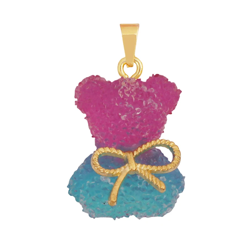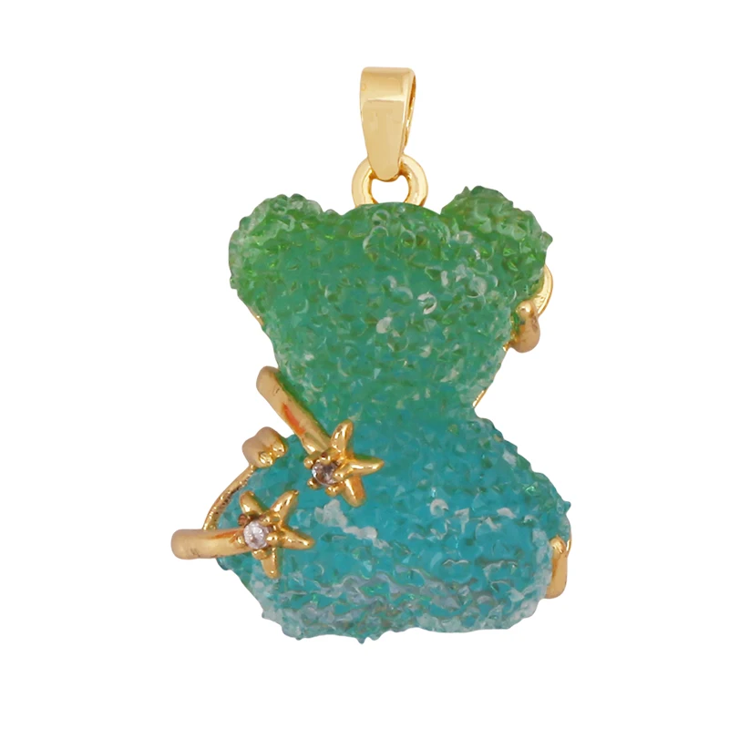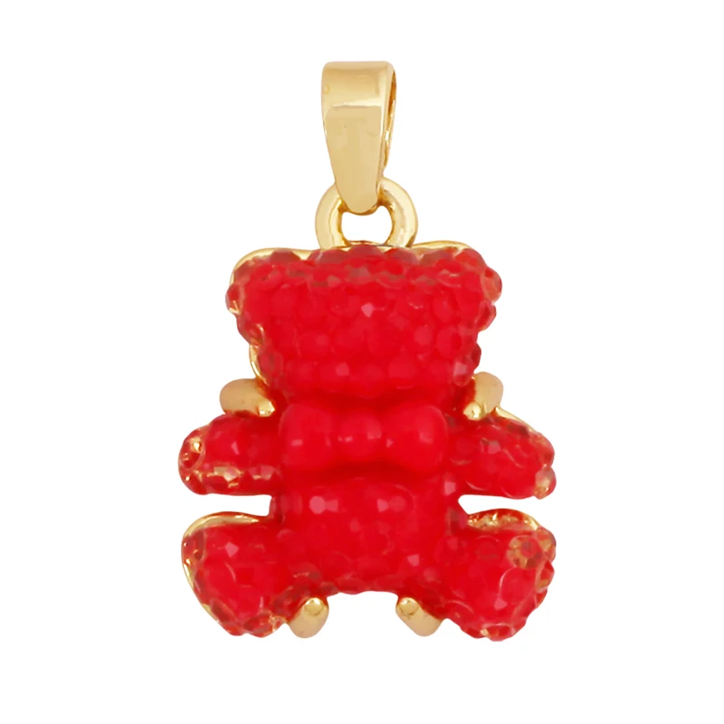 Cute Bear Animal Charm Pendant Inlaid Colourful Resin,Real 18K Gold Plated Jewelry Necklace Bracelet DIY Making Supplies K86