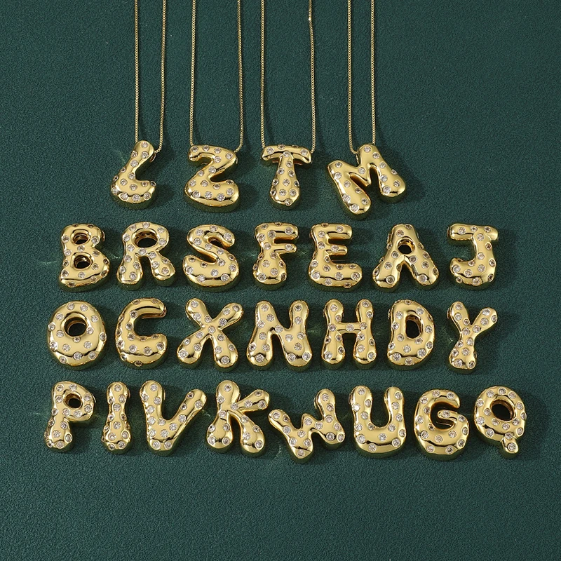 Cute Fashion 18K Gold Plated Full Zircon Crown Initial Name A-Z Letter Charm Pendant Necklace,Jewelry Findings Supplies K68