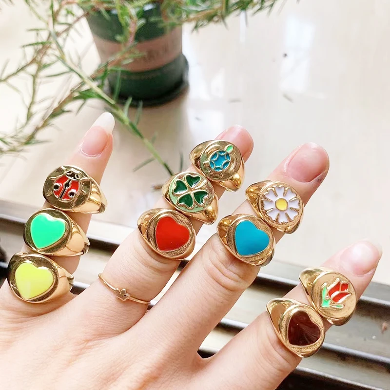 Daisy Flower Ladybug Butterfly Heart Taiji Clover Finger Ring Antique Grandma's Women's Adjustable Ring Girl Party Jewelry
