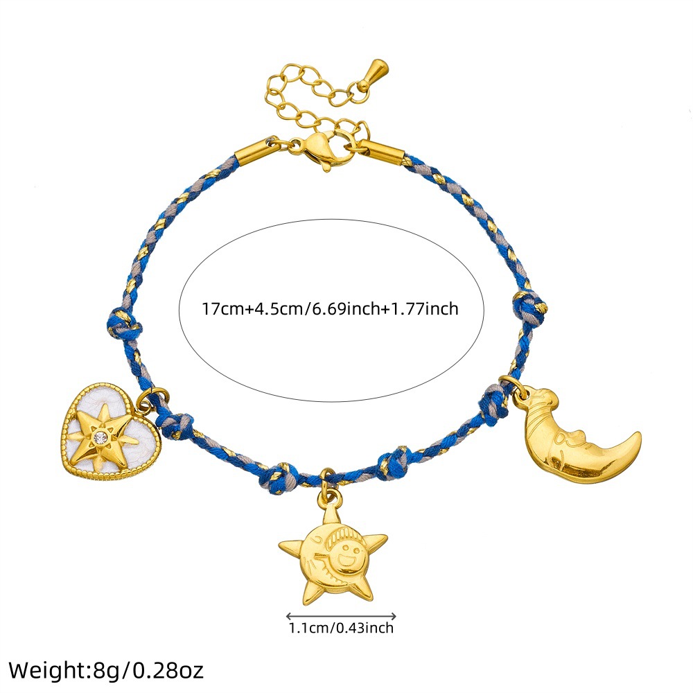Distressed retro multi-colored cotton rope braided bohemian eight-pointed star heart moon pendant bracelet for women