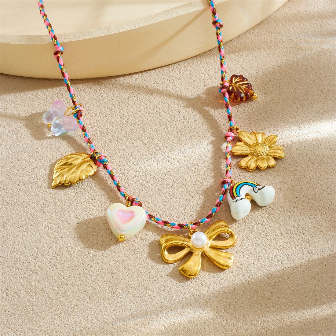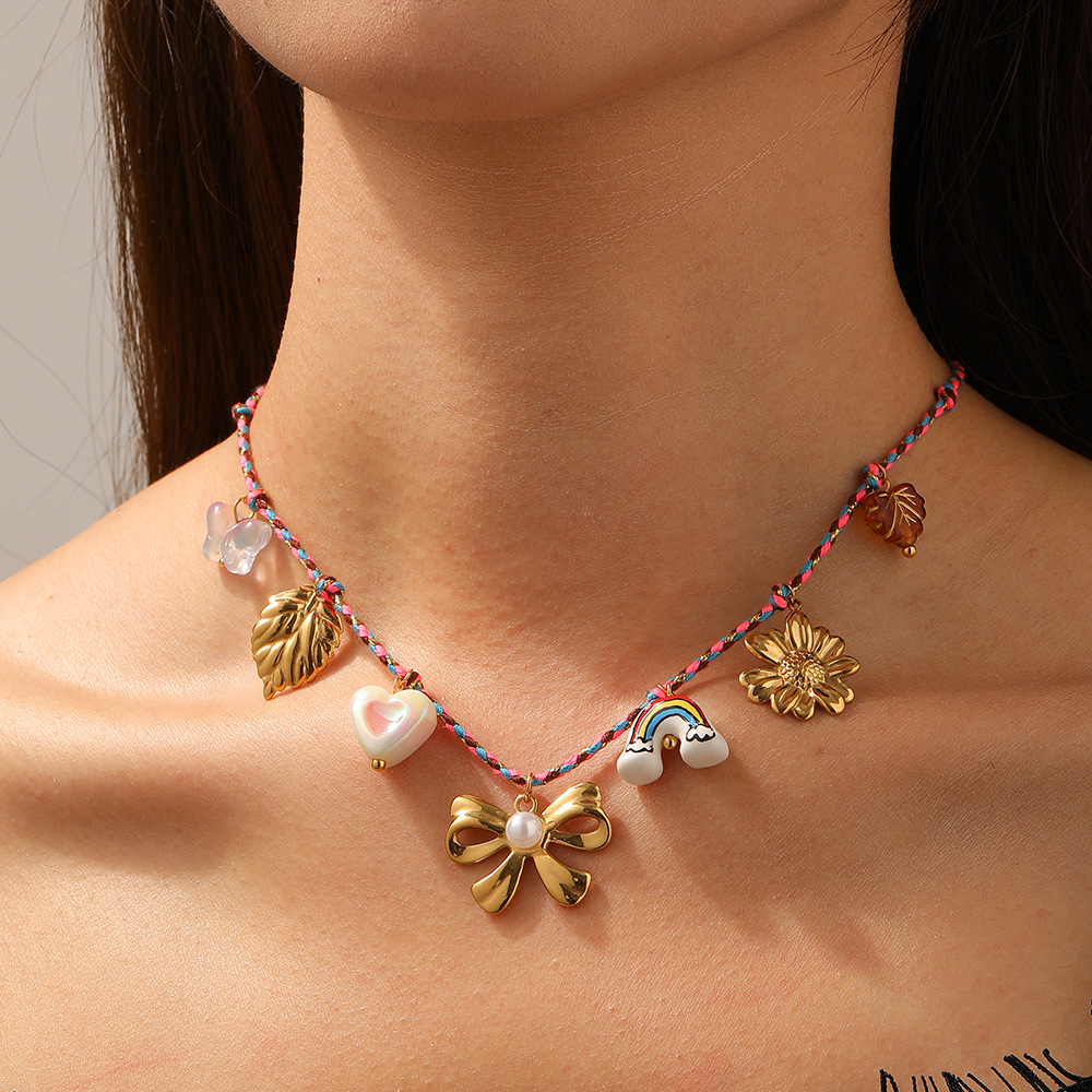 Home > New Arrival > DIY stainless steel pendant necklace , creative and unique ceramic rainbow bow choker.