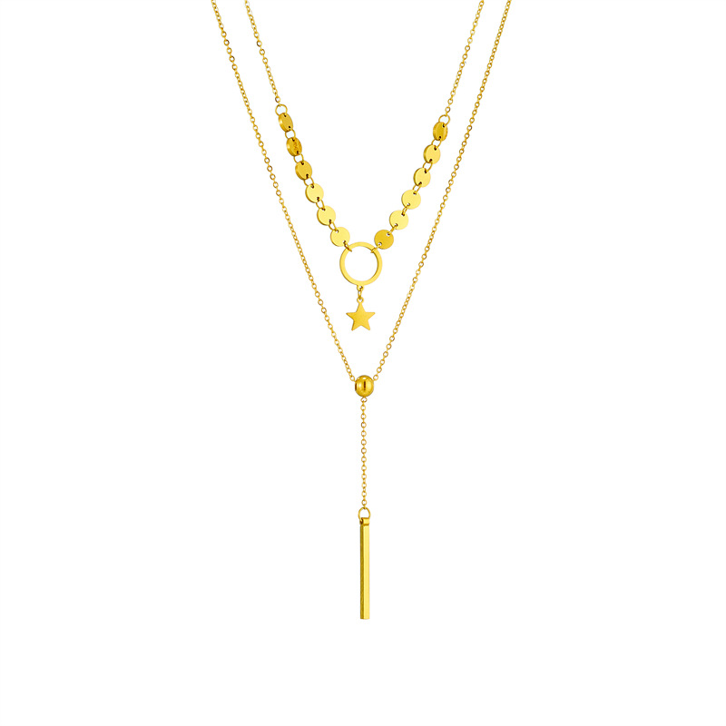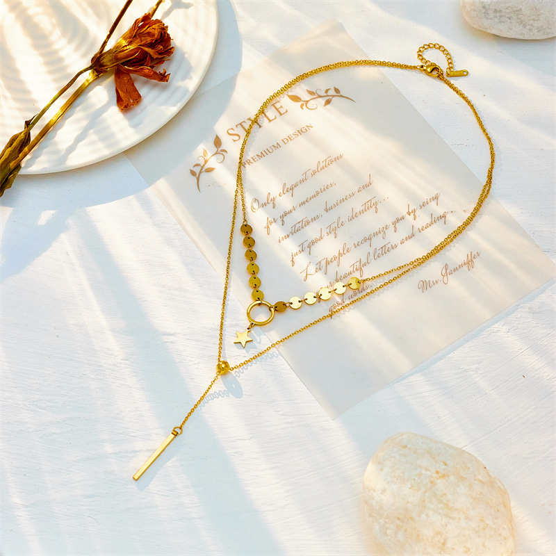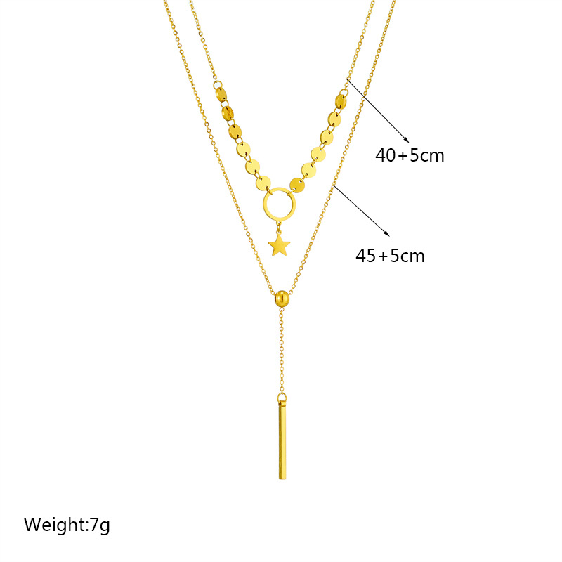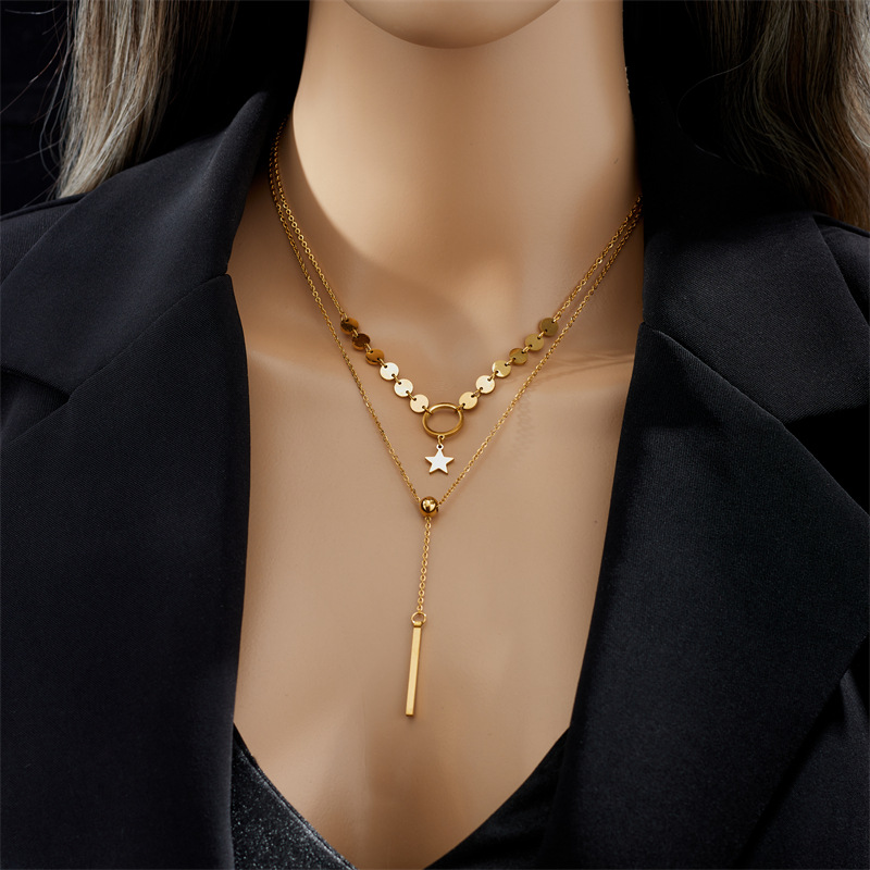 Home > New Arrival > Double-layered, minimalist, elegant tassel necklace with titanium steel circle and star pendant.
