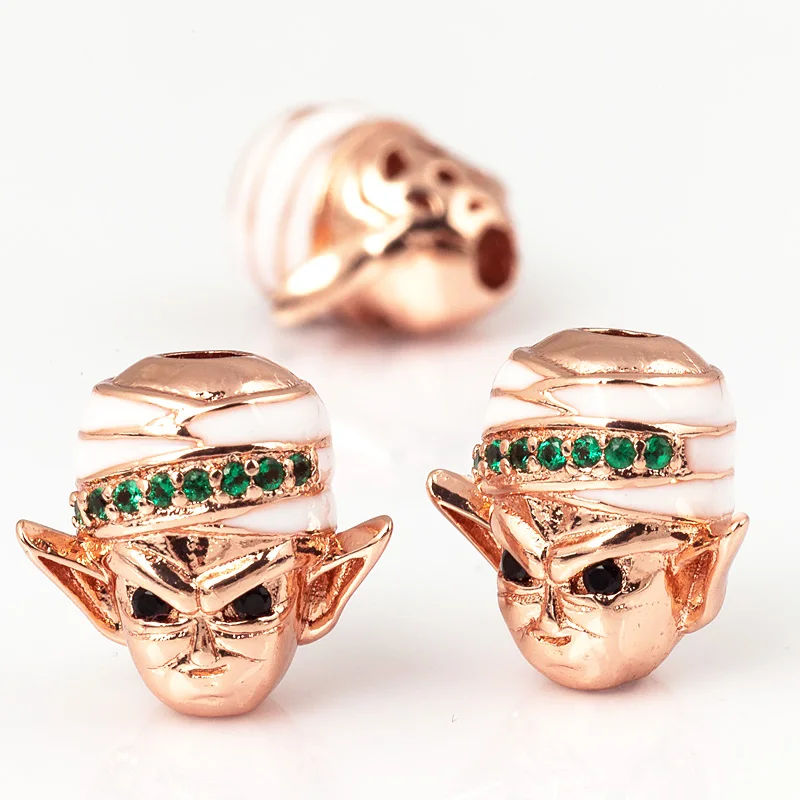 Kuririn:Height 11mm ,width : 11mm . thickness : 8mm 。 Hole diameter : 1.6mm Threading length : from left ear to right ear 8mm . Approx.Net weight : 2.07g/pc Usage : For bracelet, necklace or other crafts .