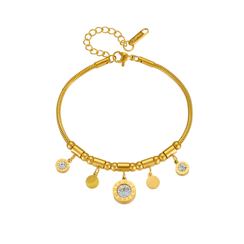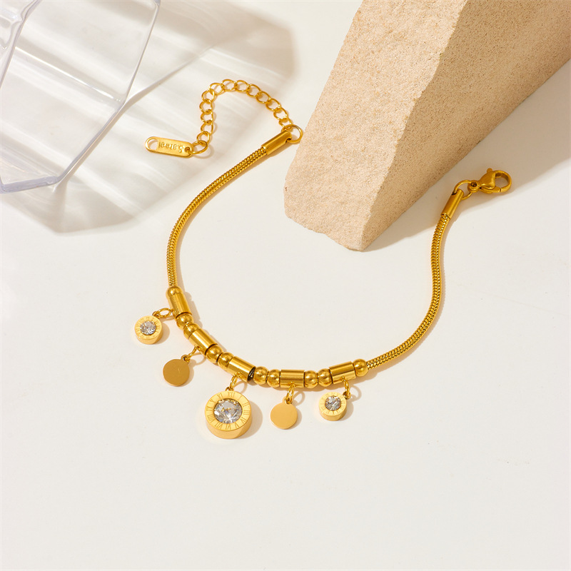 Elegant women's light luxury zircon jewelry bracelet necklace round pendant beaded chain jewelry set