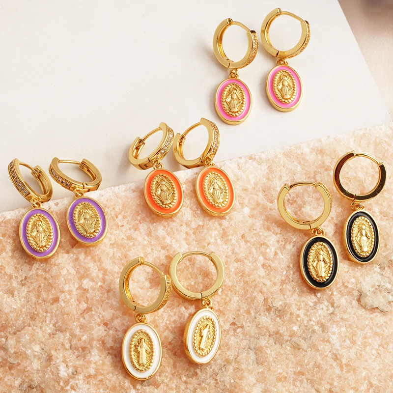Home > Fashion Jewelry > Enamel Miraculous Medal Virgin Mary Catholic Holy Earring,Brass 18K Real Gold Plated Colour,Trendy Charm Jewelry Gift Supplies M53