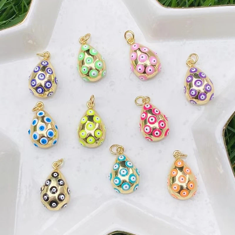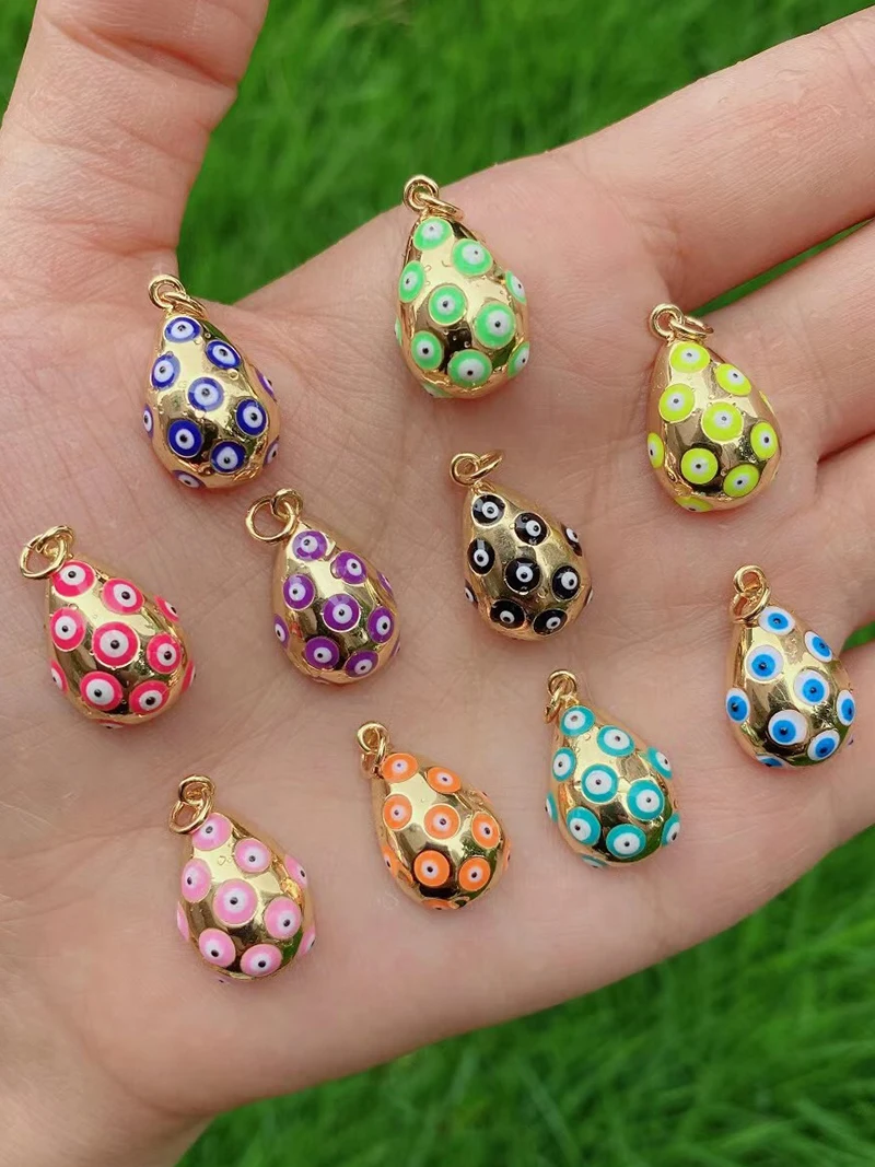 Evil Eye Teardrop Enamel Charm Neon Pink Orange Turquoise Blue Oil Dropped,Real Gold Plated ,Necklace Bracelet Pendant M09 M93