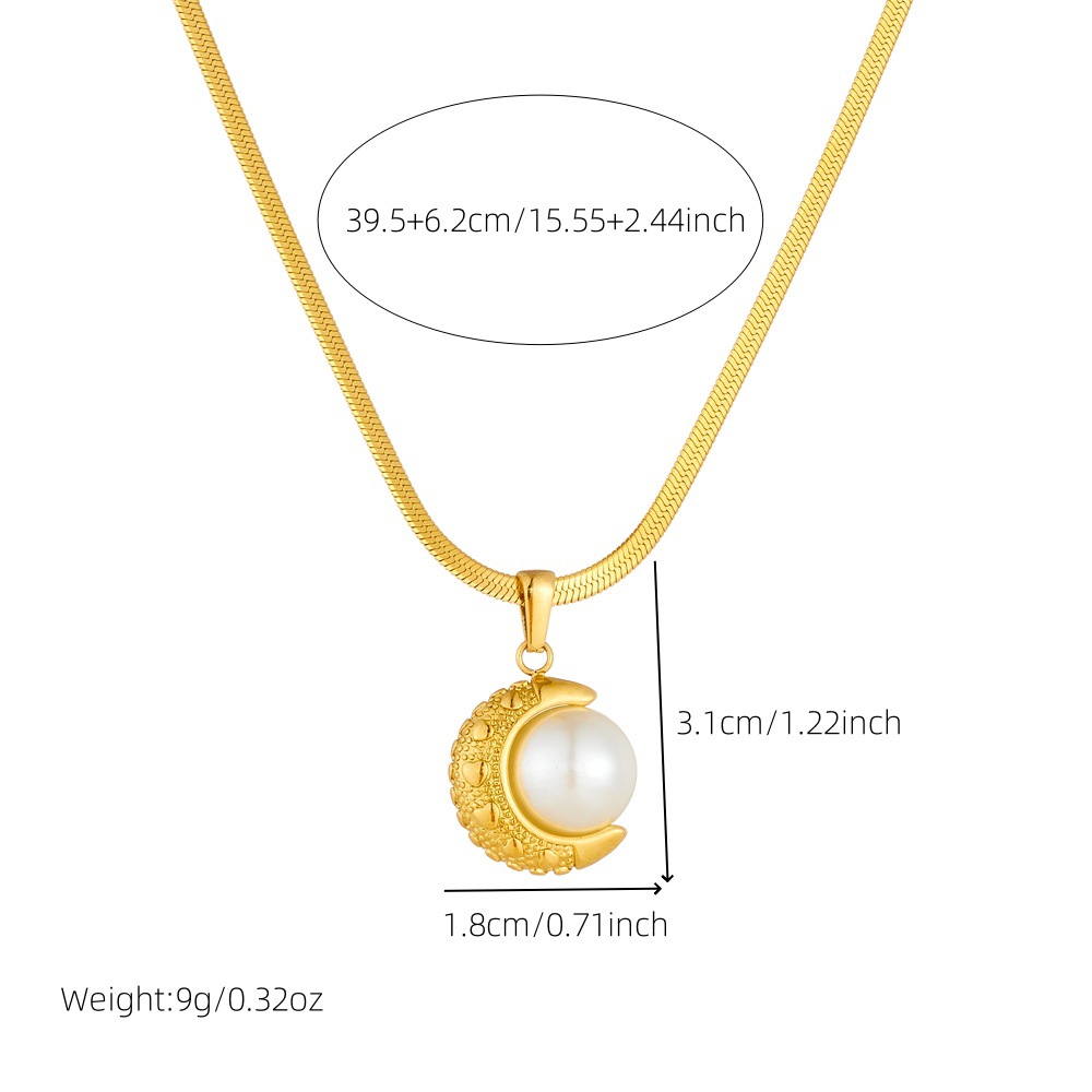 Fashion, elegant retro gold-plated moon pearl pendant blade chain stainless steel women's versatile necklace