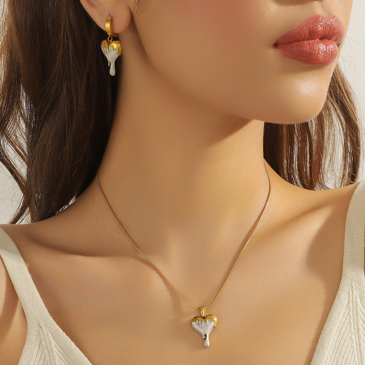 Fashion, high-end, Instagram-style gold-plated irregular heart pendant stainless steel necklace and earring set