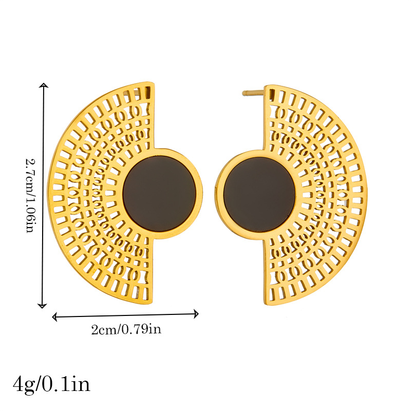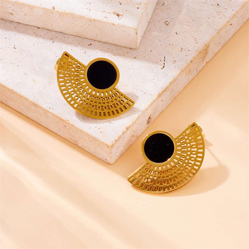 Home > New Arrival > Fashion, retro black gold-plated fan-shaped stainless steel pendant chain necklace ring earring set