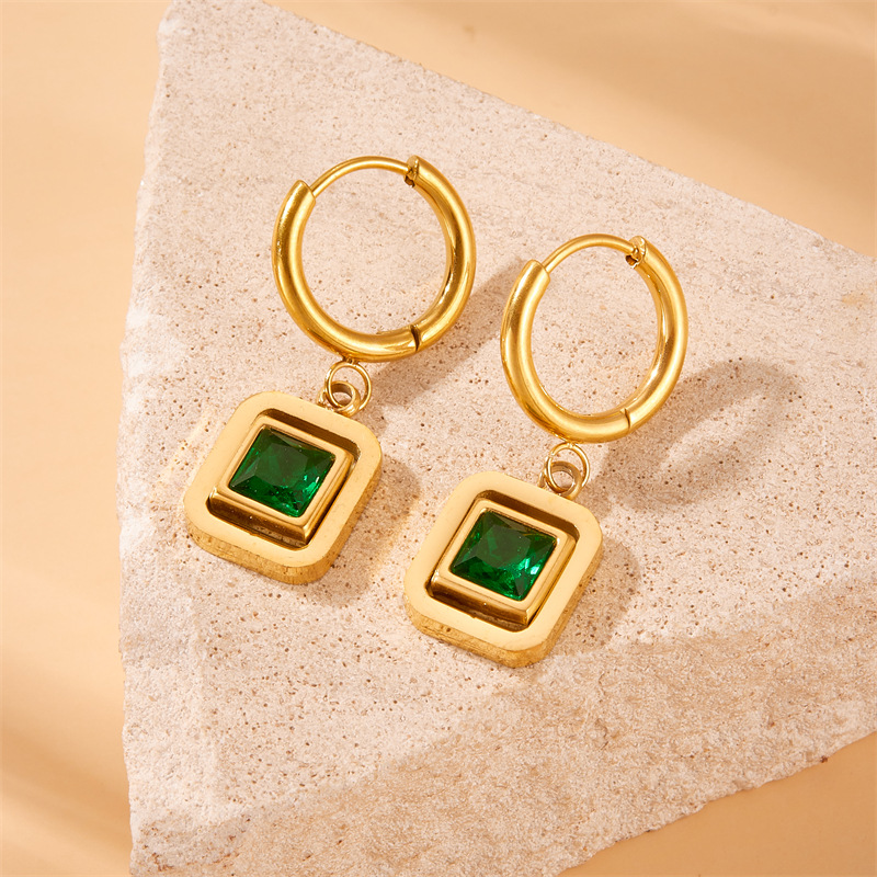 Home > New Arrival > Fashion, retro style, square emerald geometric diamond-encrusted stainless steel earrings/studs