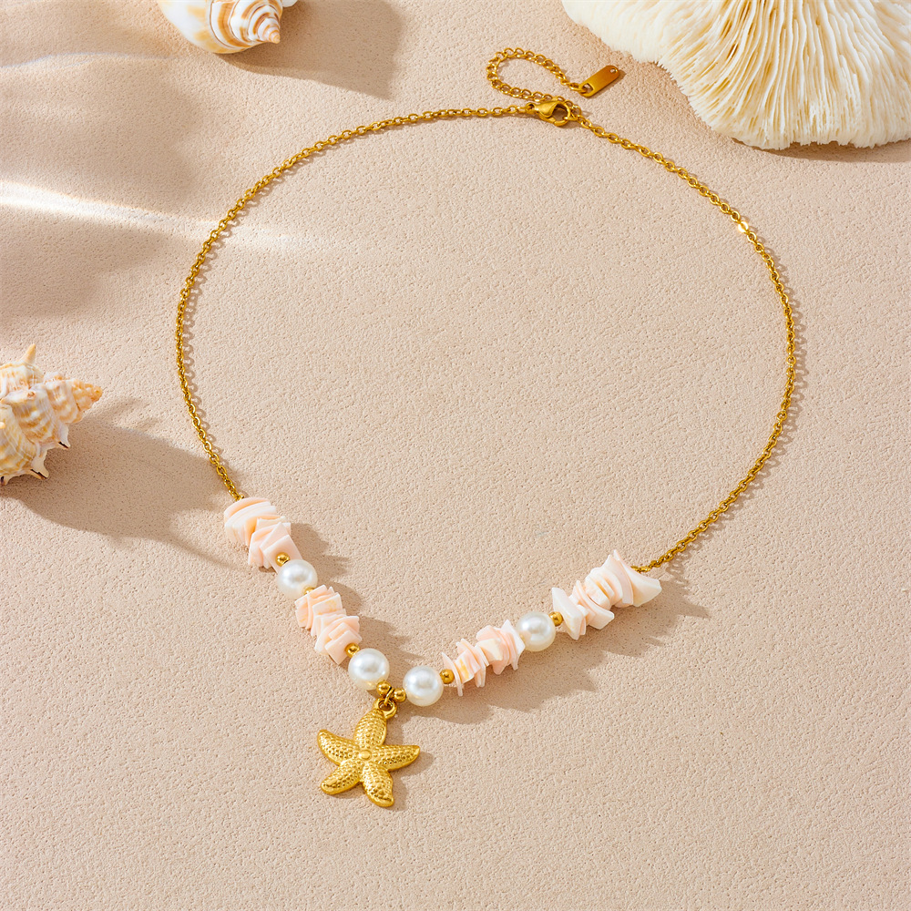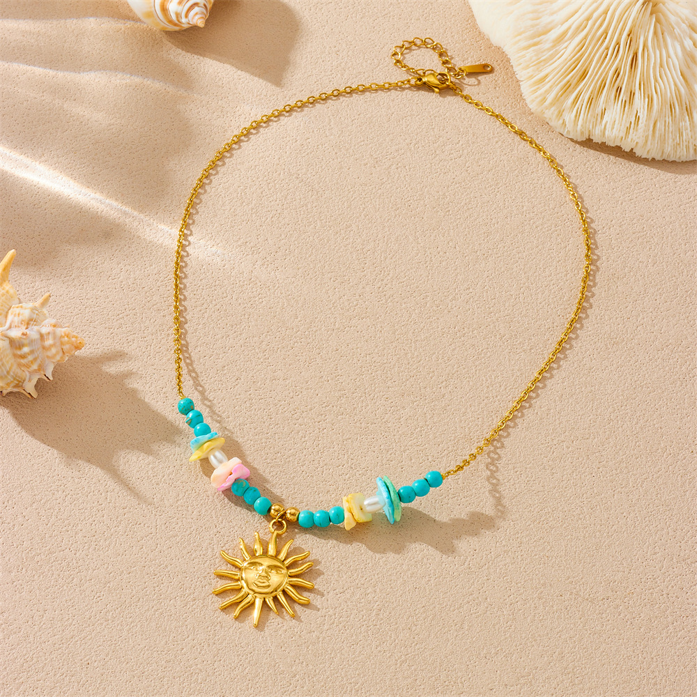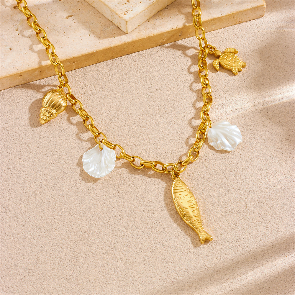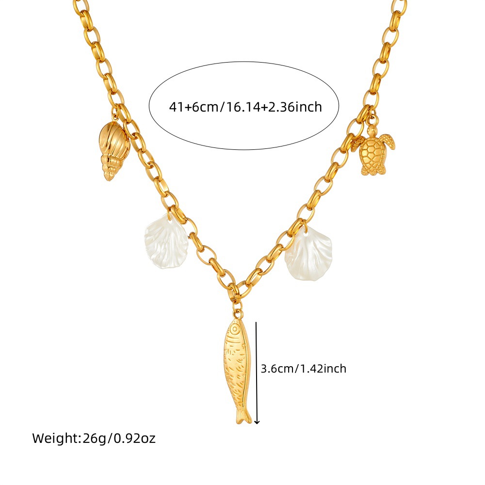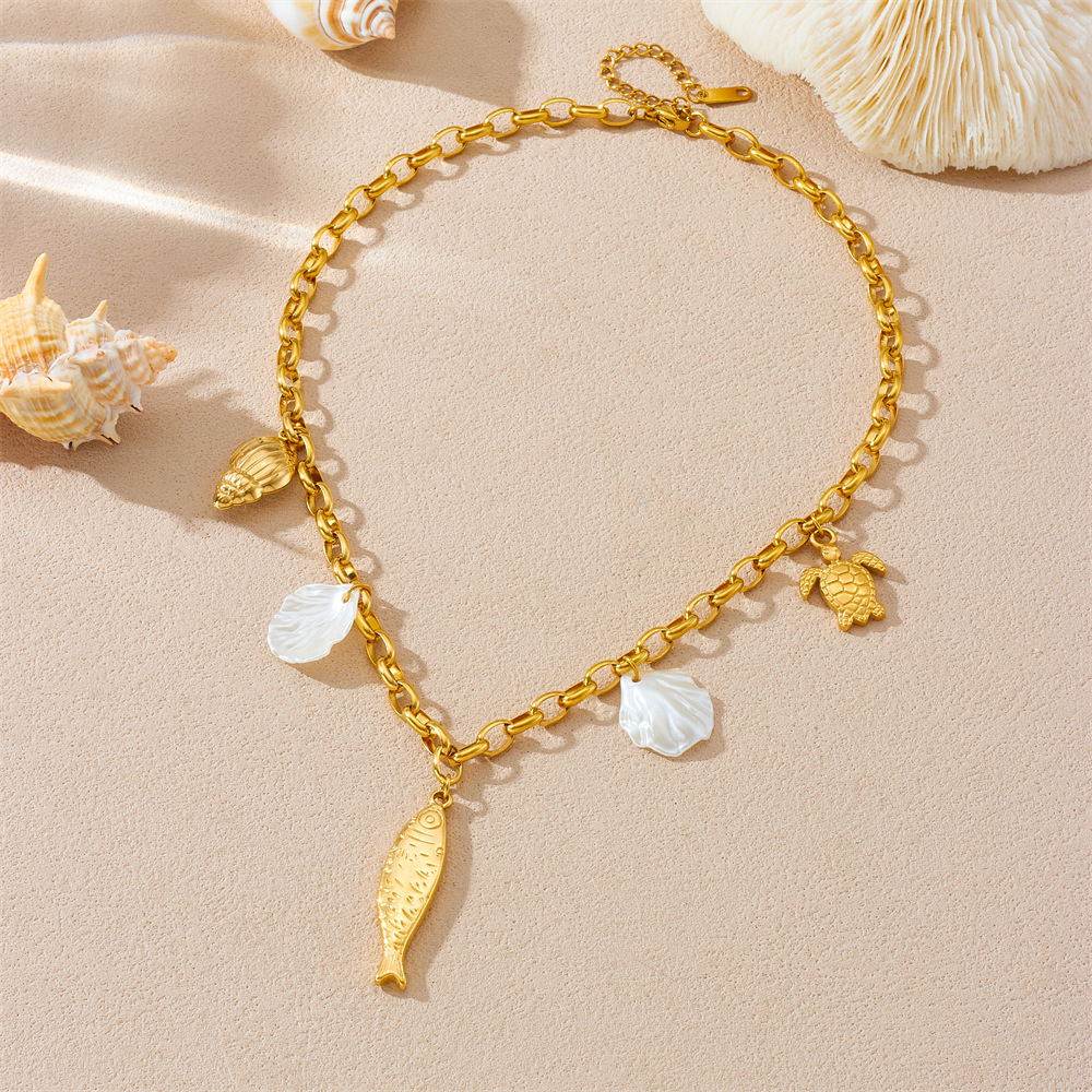 Home > New Arrival > Fashion beach vacation style seashell starfish sun cherry heart multi-element stainless steel necklace