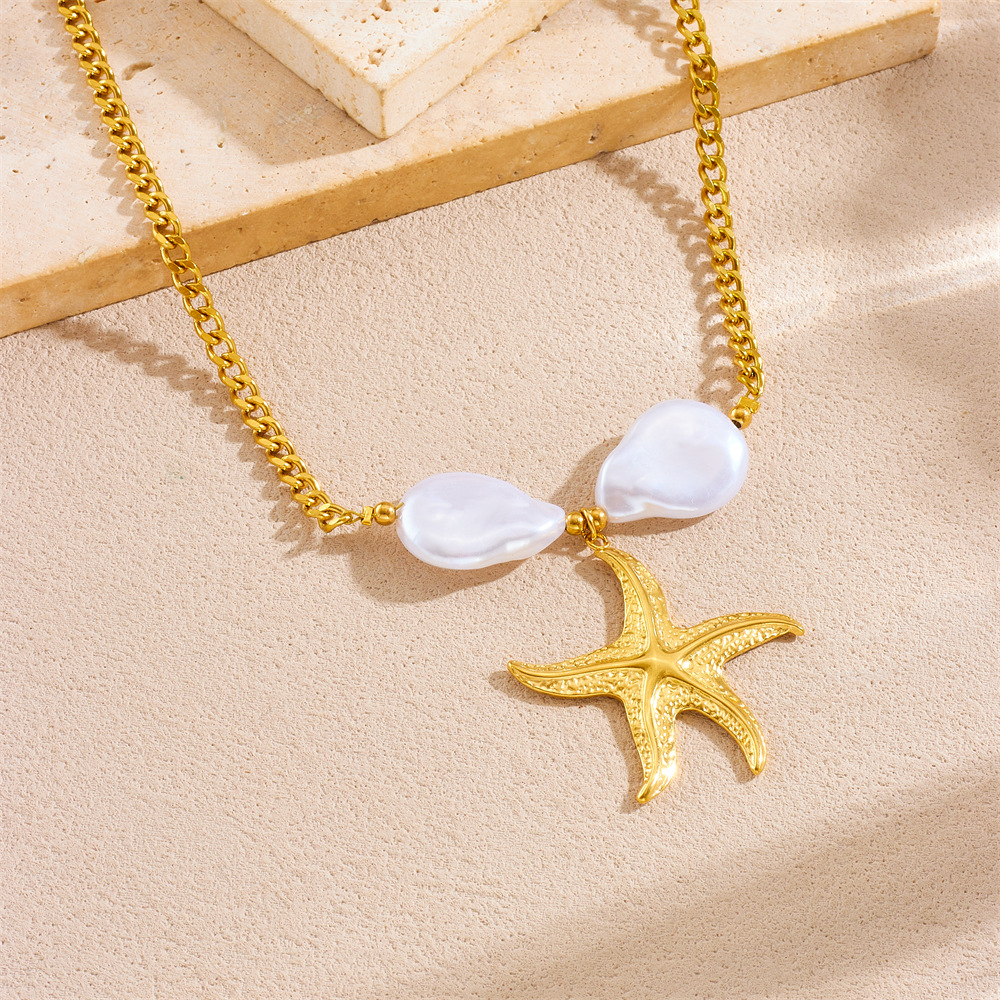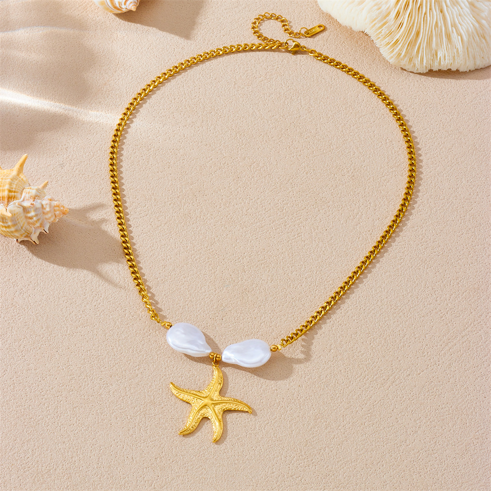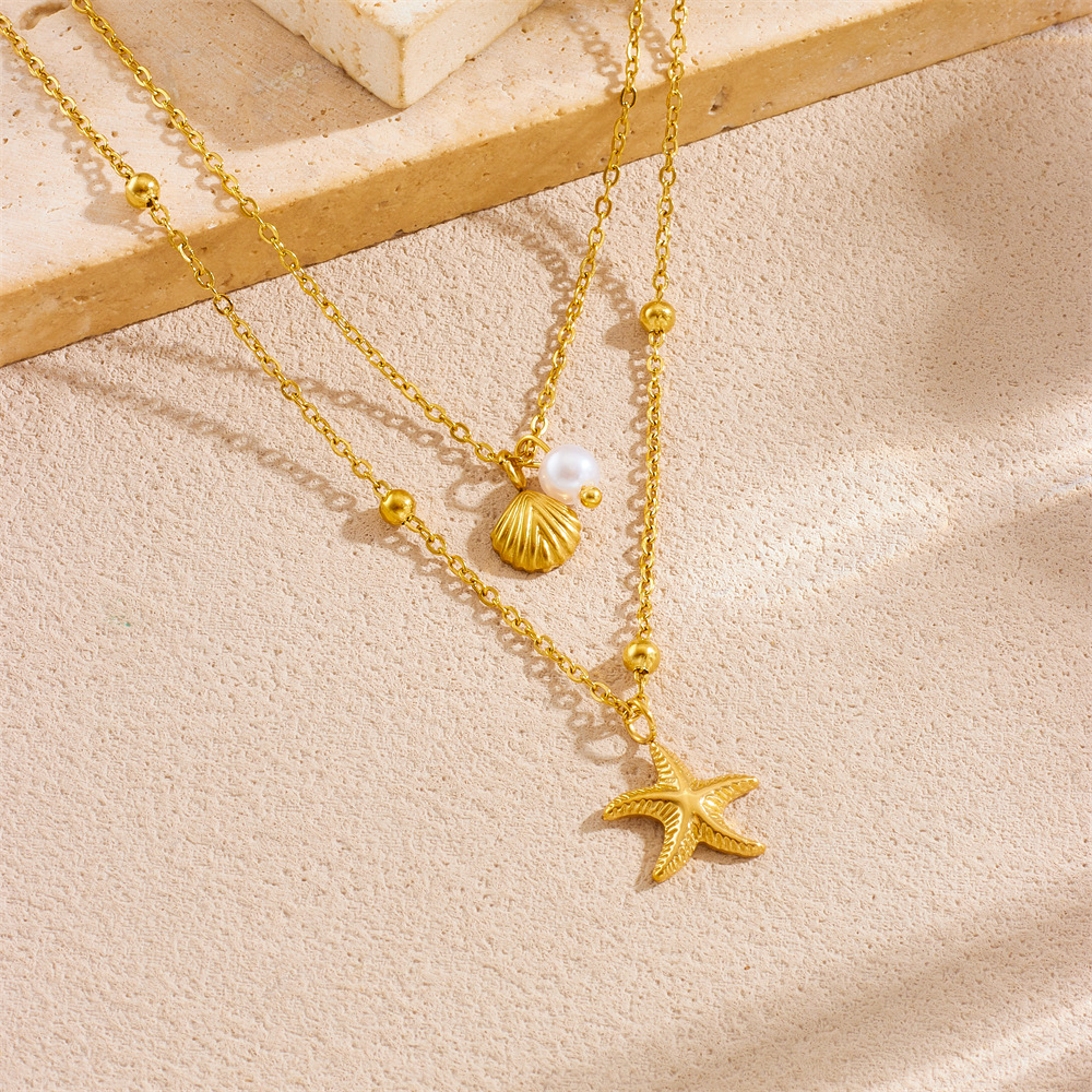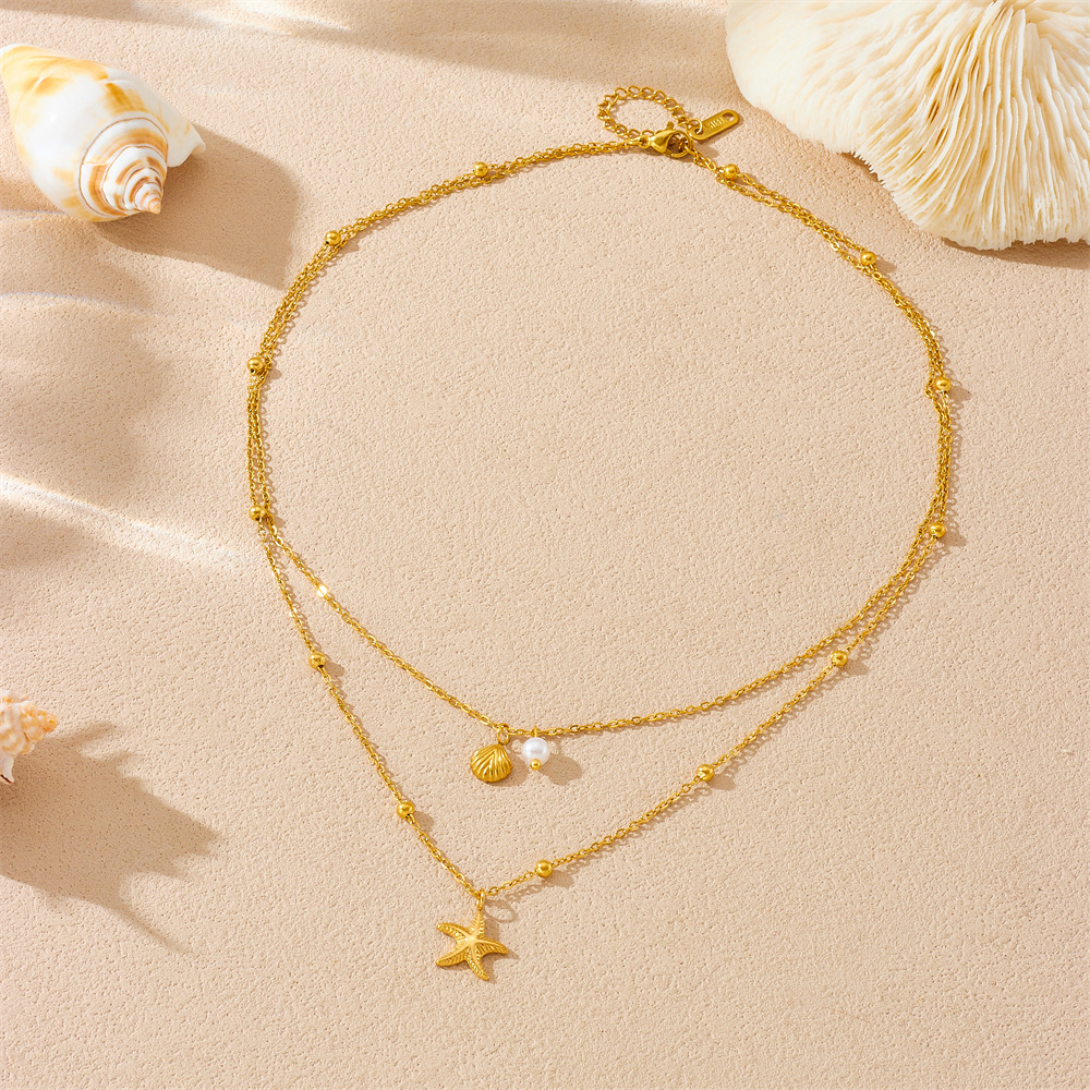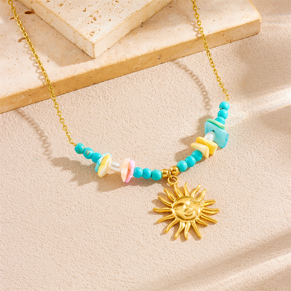 Home > New Arrival > Fashion beach vacation style seashell starfish sun cherry heart multi-element stainless steel necklace