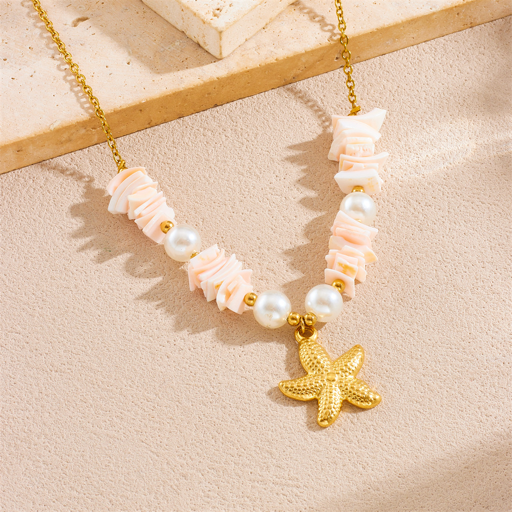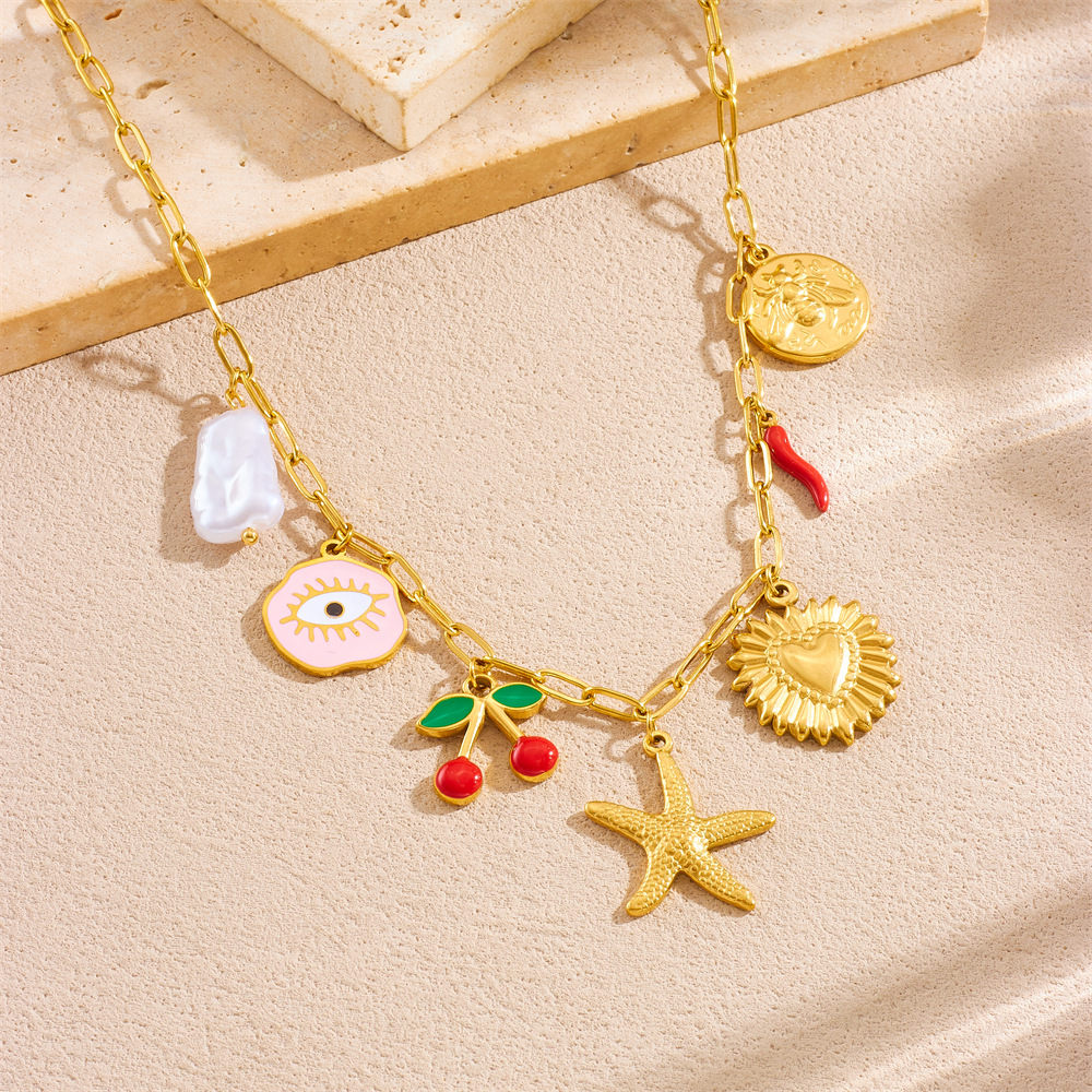 Fashion beach vacation style seashell starfish sun cherry heart multi-element stainless steel necklace