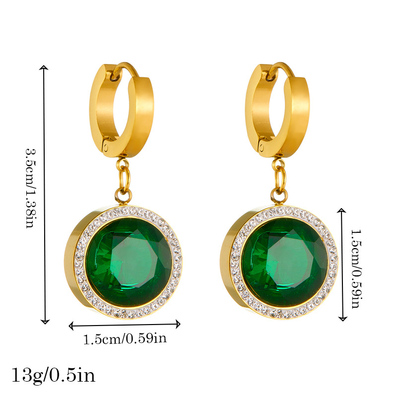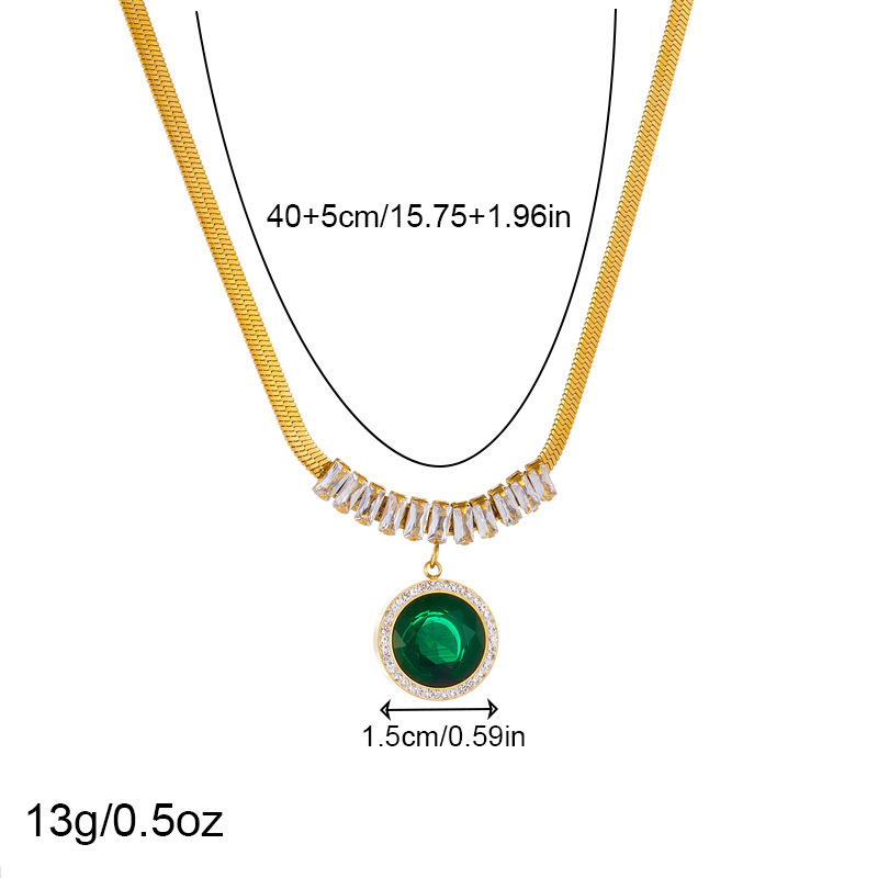 Home > New Arrival > Fashion best-selling retro round diamond-encrusted emerald pendant stainless steel earrings chain bracelet necklace set