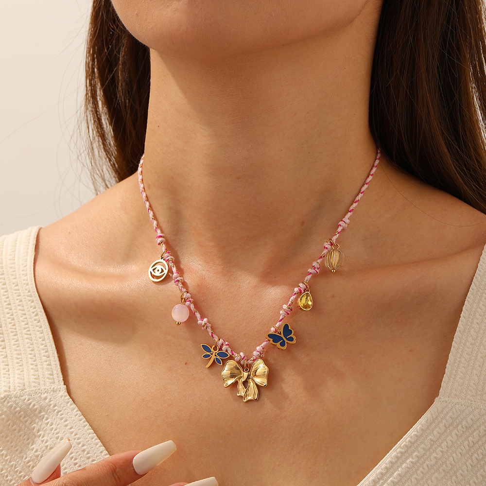 Fashion bohemian style multi-element pendant gold-plated dripping insect bow eye accessory necklace