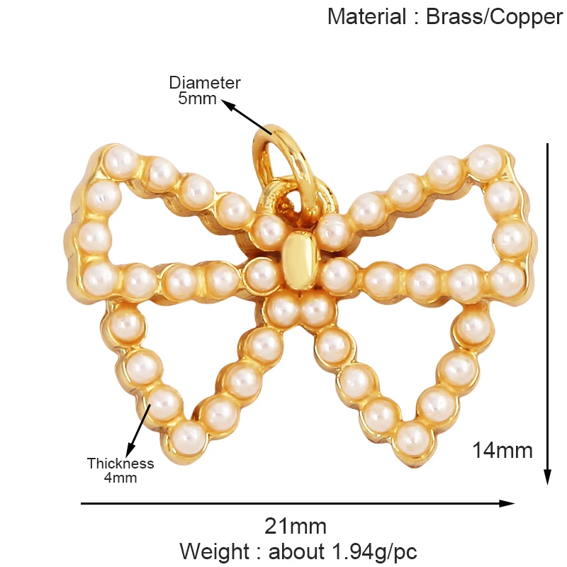 Home > Pendants and charms > Brass Charms and Pendants > Fashion Bowknot Zircon Pearl Charm Pendant,18K Gold Plated Necklace Bracelet DIY Handmade Jewelry Making Accessories Supply K78