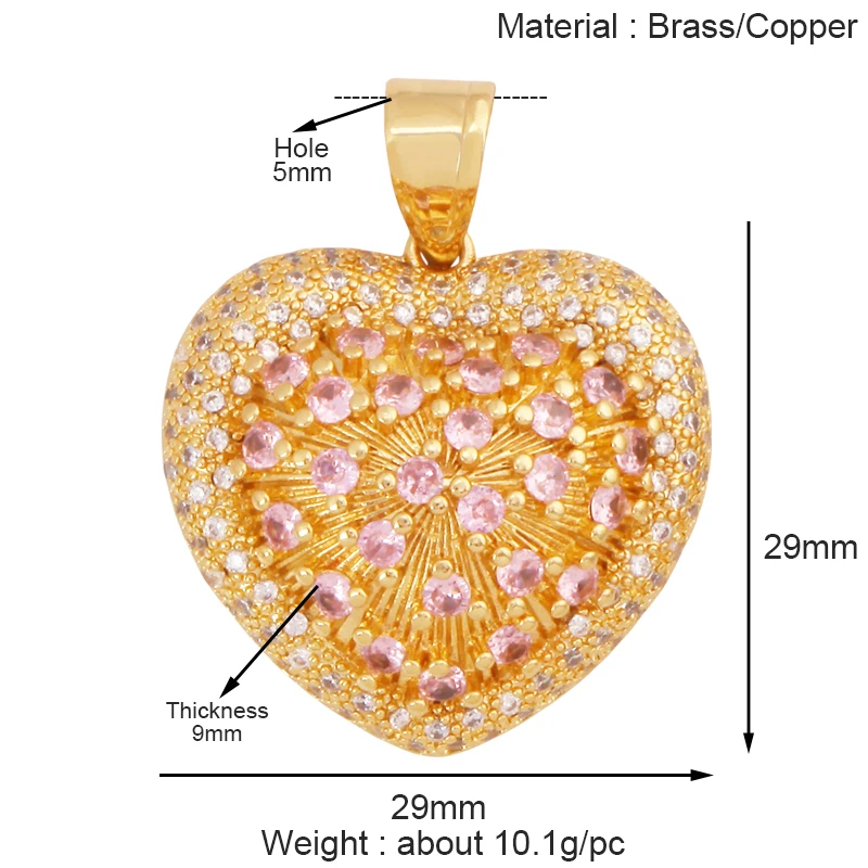 Home > New Arrival > Fashion Colorful Zircon Focal Love Heart Charm Pendant,Real 18K Gold Plated Necklace Bracelet DIY Handmade Jewelry Supplies S26