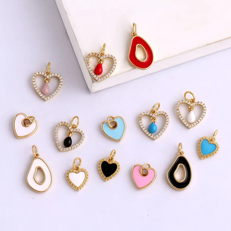 Home > Pendants and charms > Fashion Colourful Enamel Dripping Oil Love Heart Charm Pendant,Cute 18K Gold Zircon Mix Style Jewelry Necklace Accessories L26