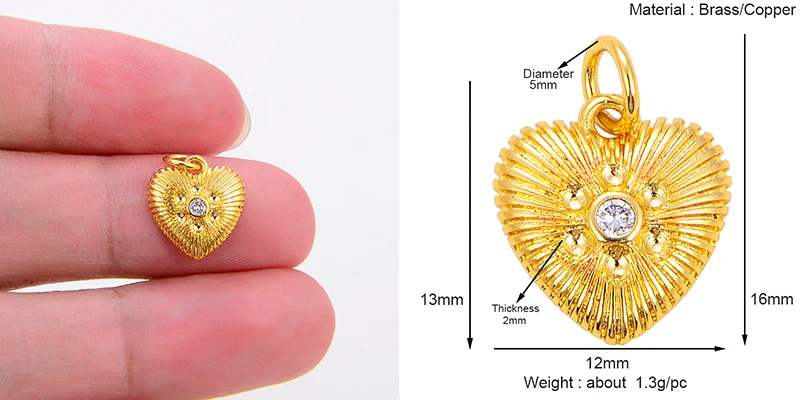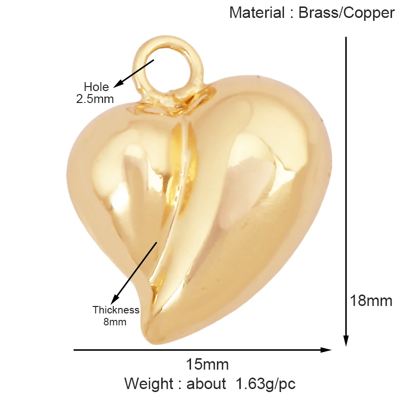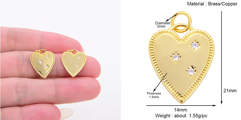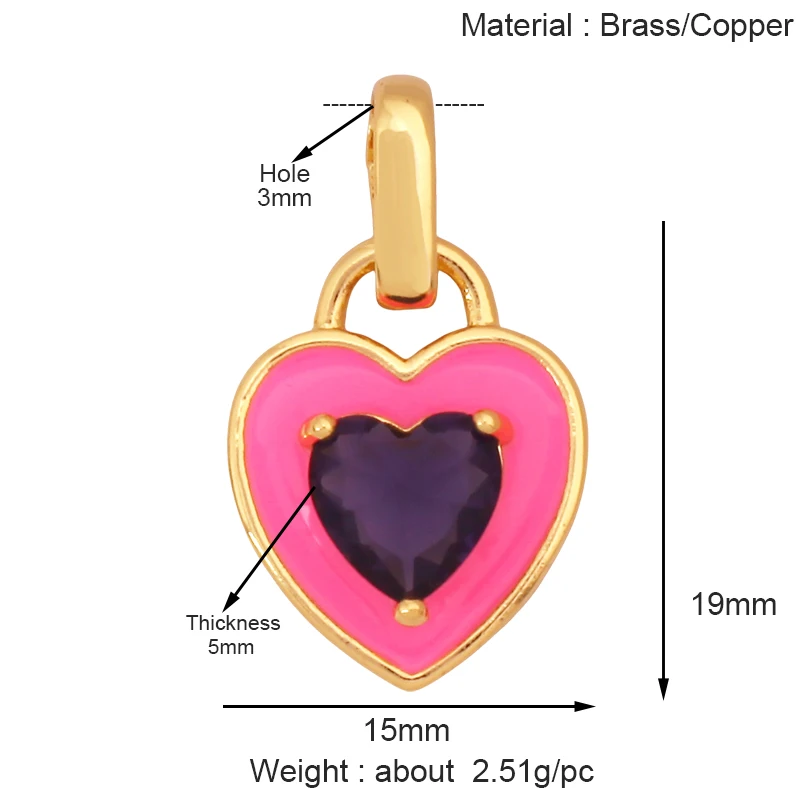 Fashion Colourful Heart Shape Charm Pendant,Classics Love Heart Cubic Zirconia Real 18K Gold Plated Craft Jewelry Supplies K66