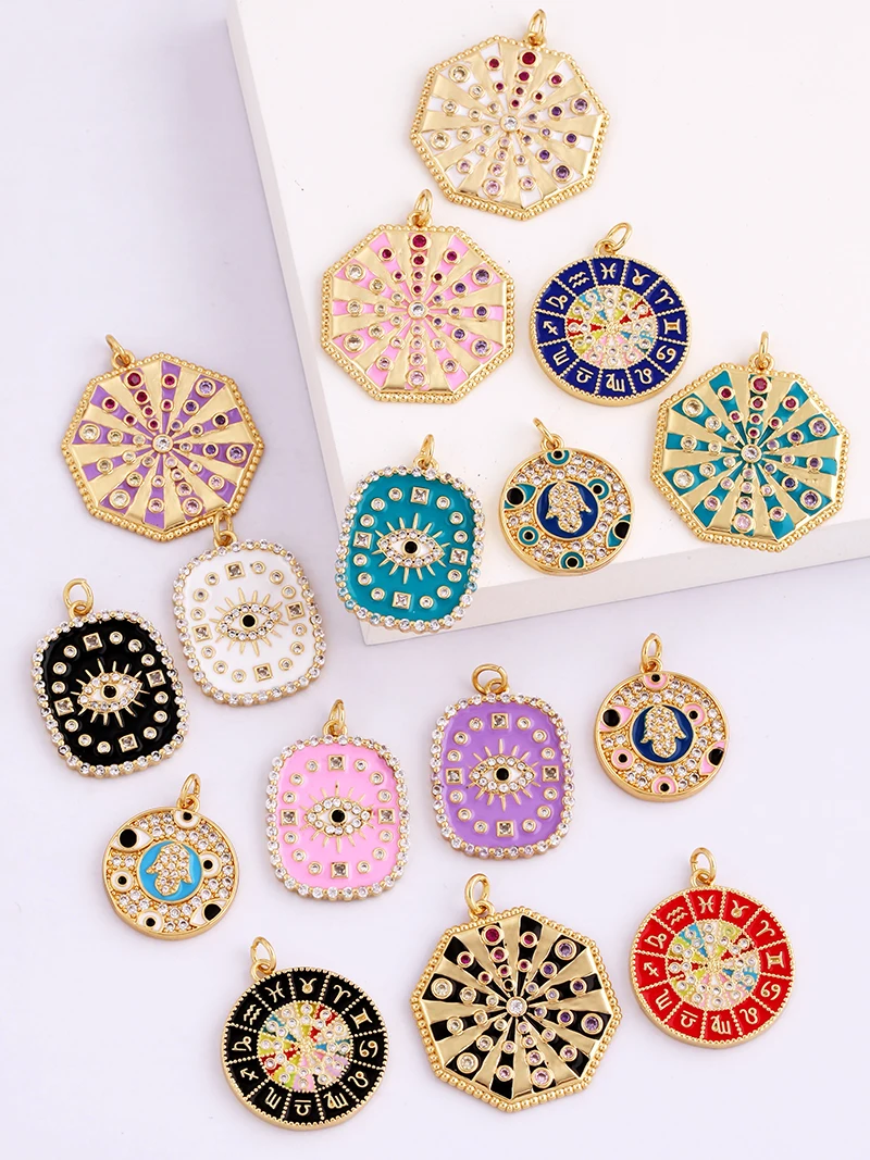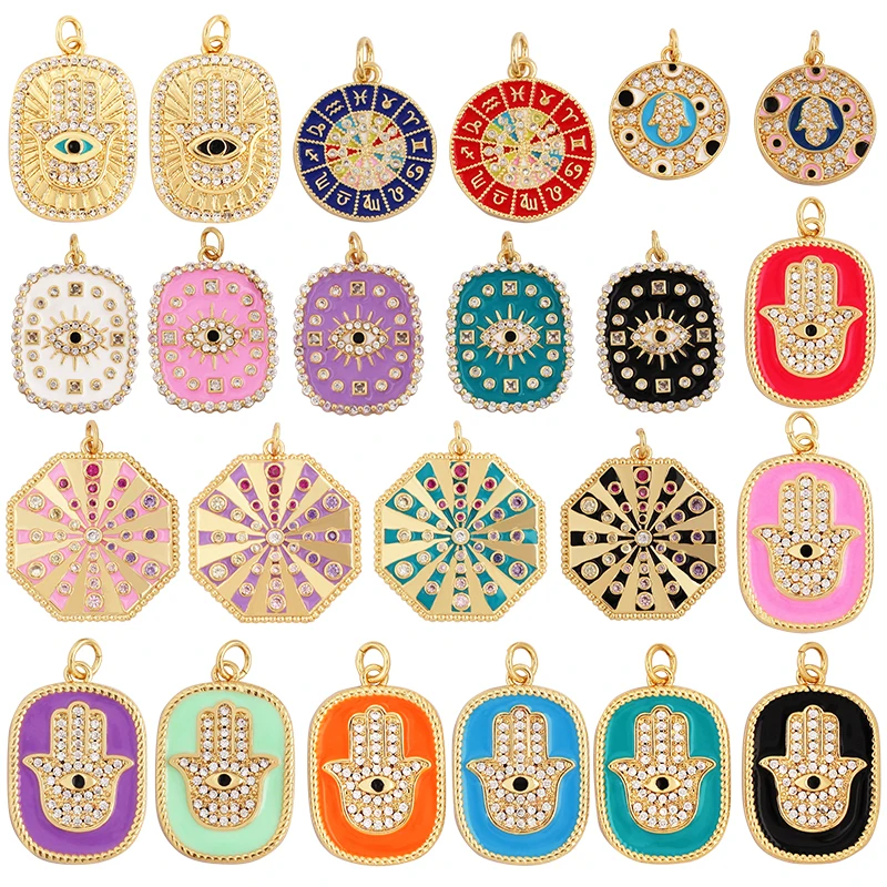 Home > New Arrival > Fashion Colourful Turkish Evil Luck Eye Hand Charm Pendant,Simple Geometric Zircon Horoscope Sign Necklace Jewelry Supplies M36