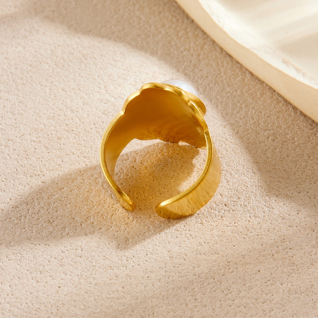 Fashion court style oval gold-plated carved stainless steel ring/band inlaid with pearls, lapis lazuli gemstones