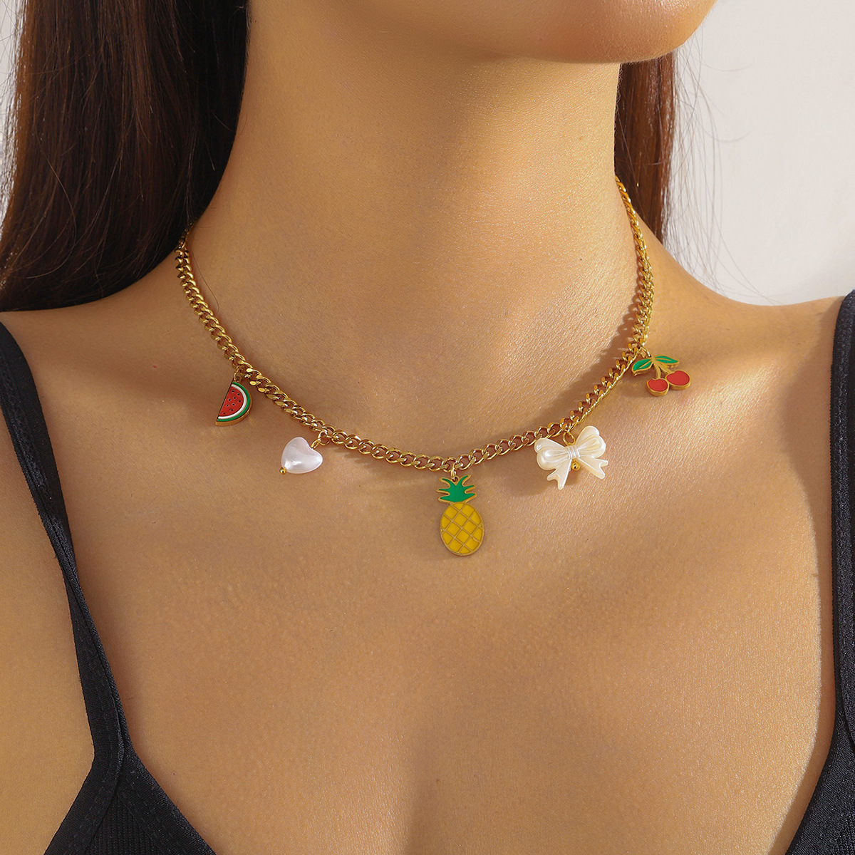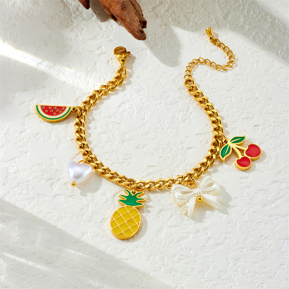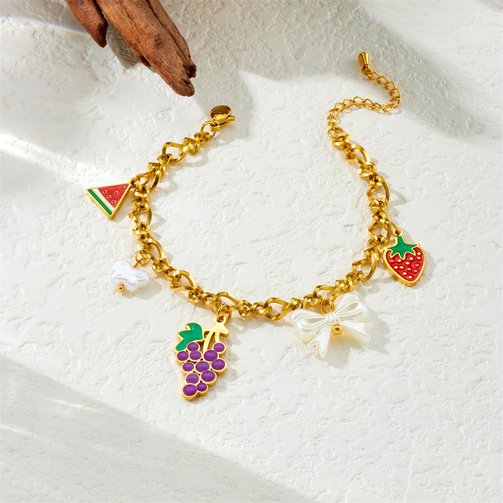 Fashion creative cartoon cute dripping fruit grape pineapple cherry bow seashell jewelry set