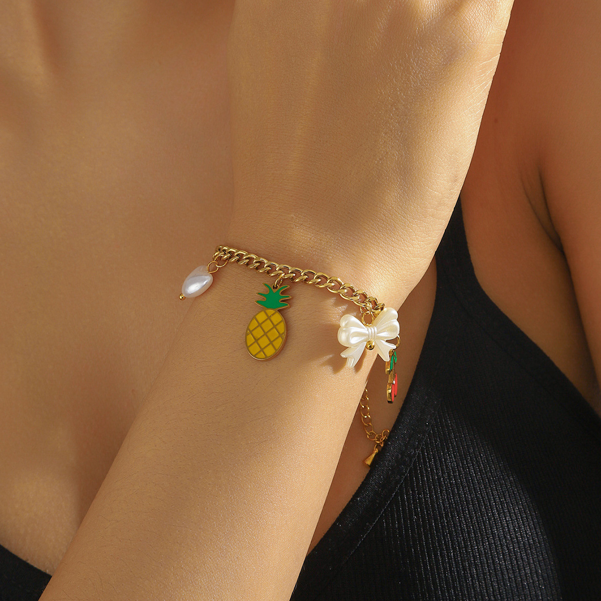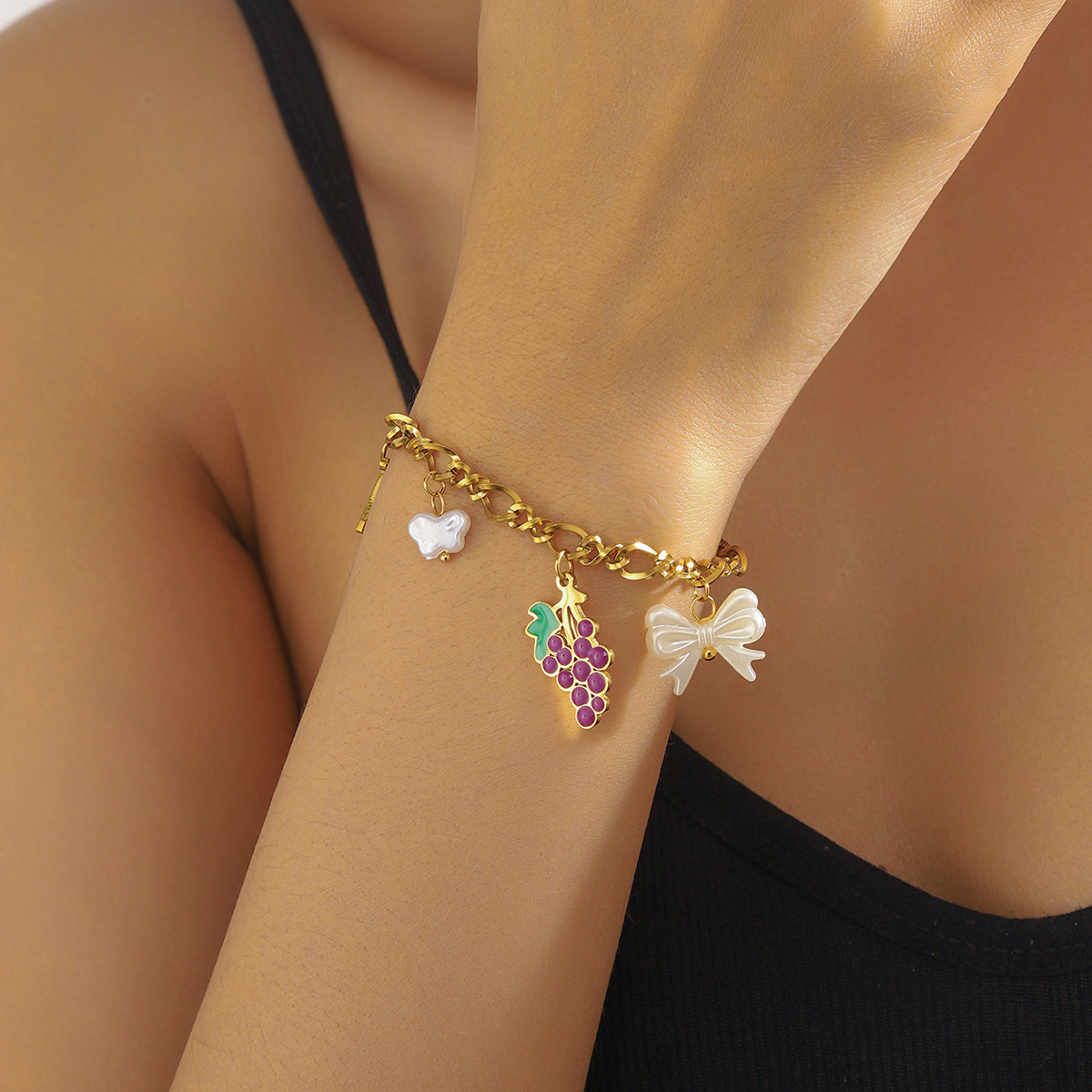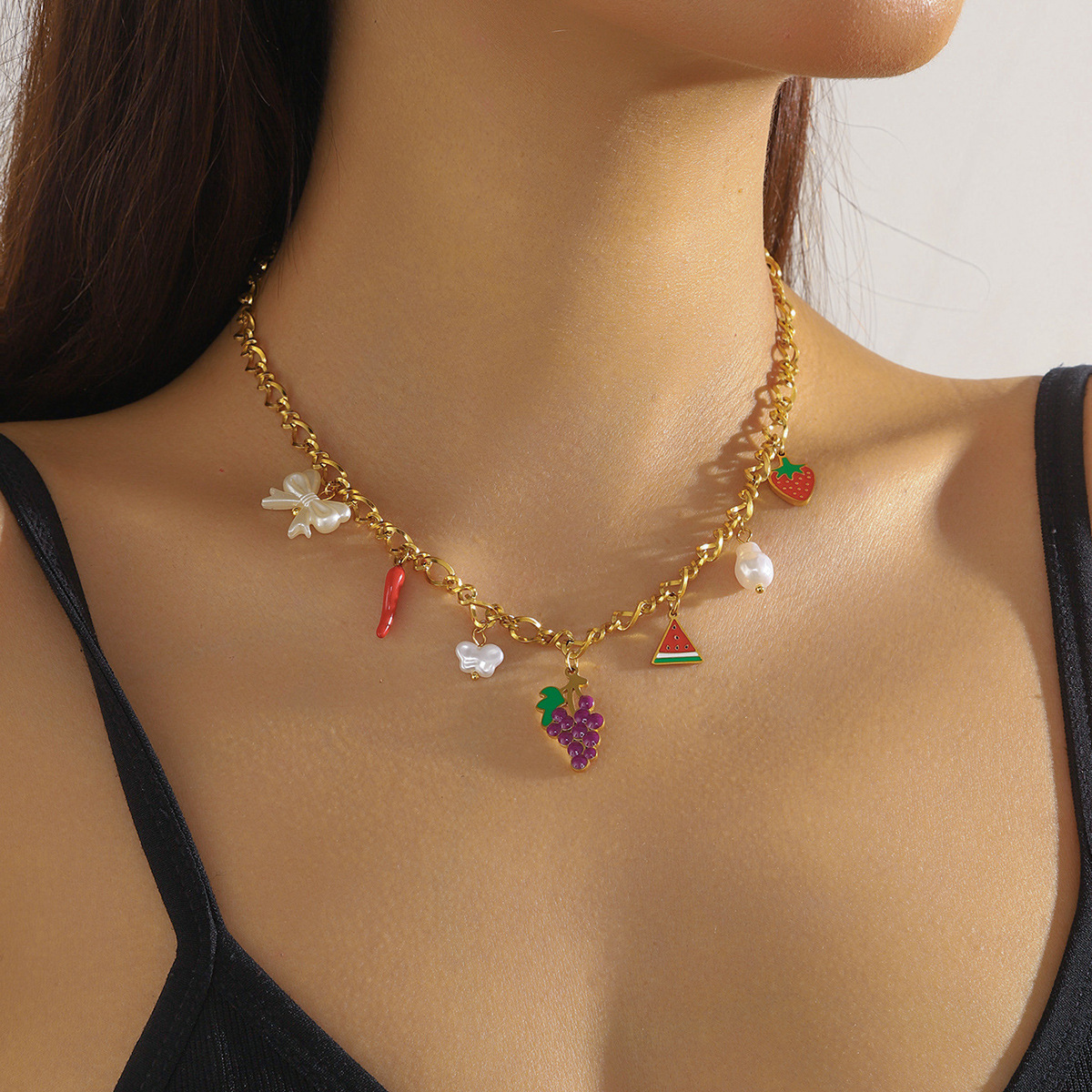 Fashion creative cartoon cute dripping fruit grape pineapple cherry bow seashell jewelry set