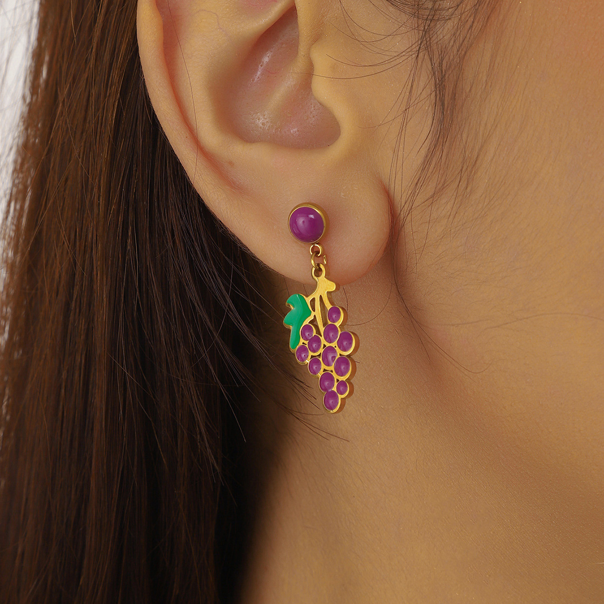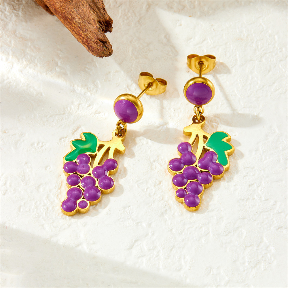 Home > New Arrival > Fashion creative cartoon cute dripping fruit grape pineapple cherry bow seashell jewelry set