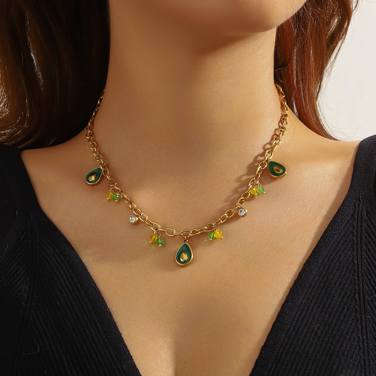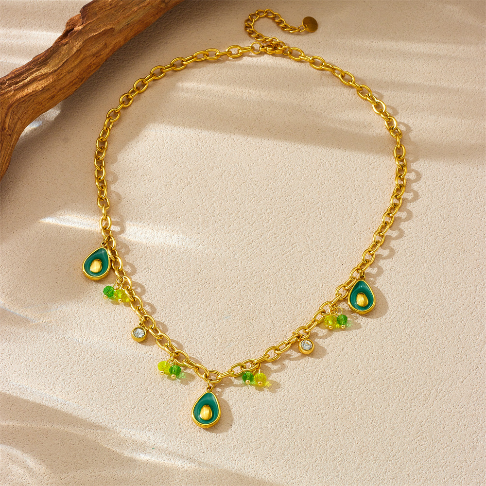 Home > New Arrival > Fashion creative personalized cartoon dripping fruit avocado pendant chain stainless steel gold-plated necklace