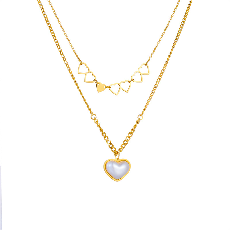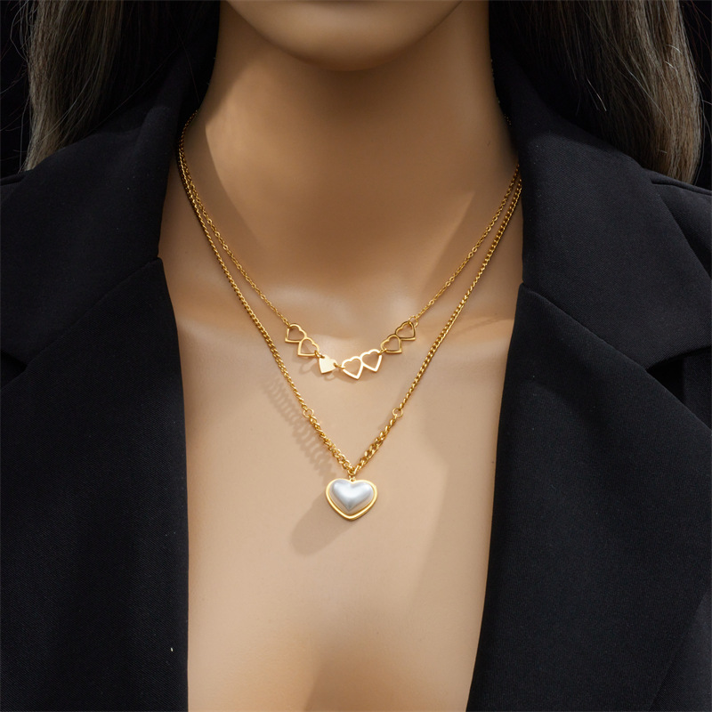 Home > New Arrival > Fashion creative unique double-layered hollow double heart pendant chain pearl peach heart necklace