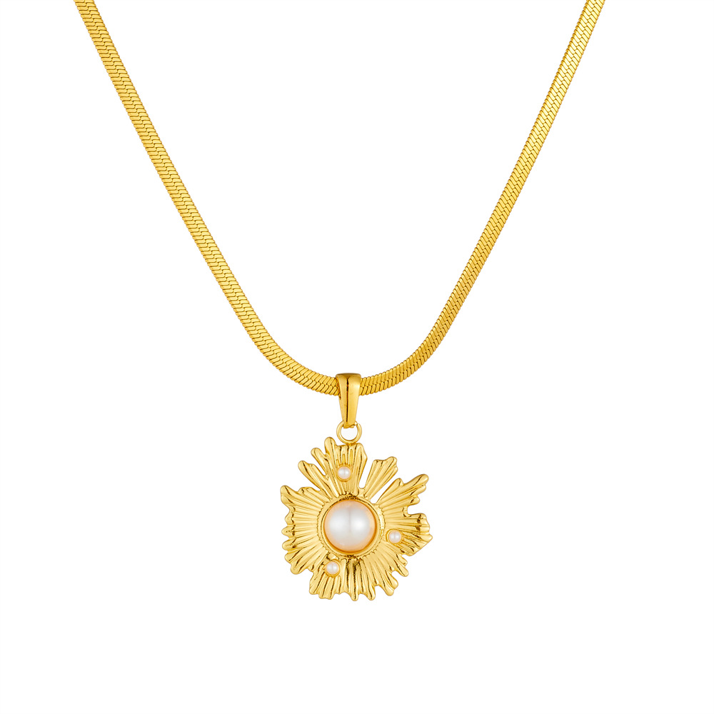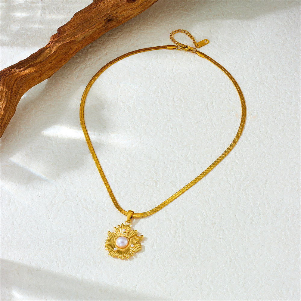 Home > New Arrival > Fashion freshwater pearl sunflower gold-plated blade chain stainless steel pendant irregular personalized necklace
