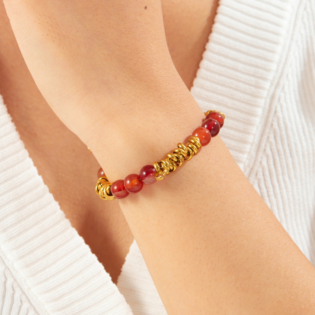 Home > New Arrival > Fashion gold-plated circular red resin beaded chain stainless steel retro design jewelry bracelet