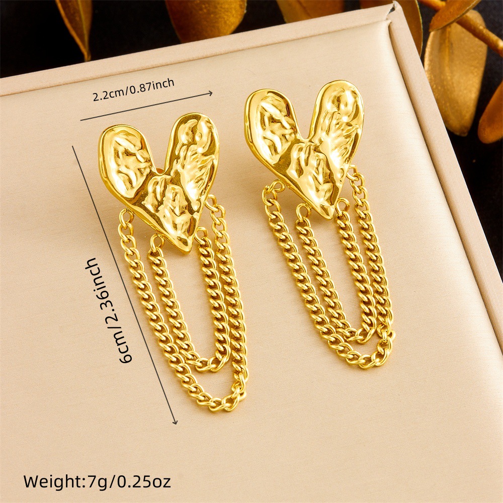 Fashion gold-plated diamond-encrusted sun heart flower bow tassel stainless steel light luxury high-end women's earrings