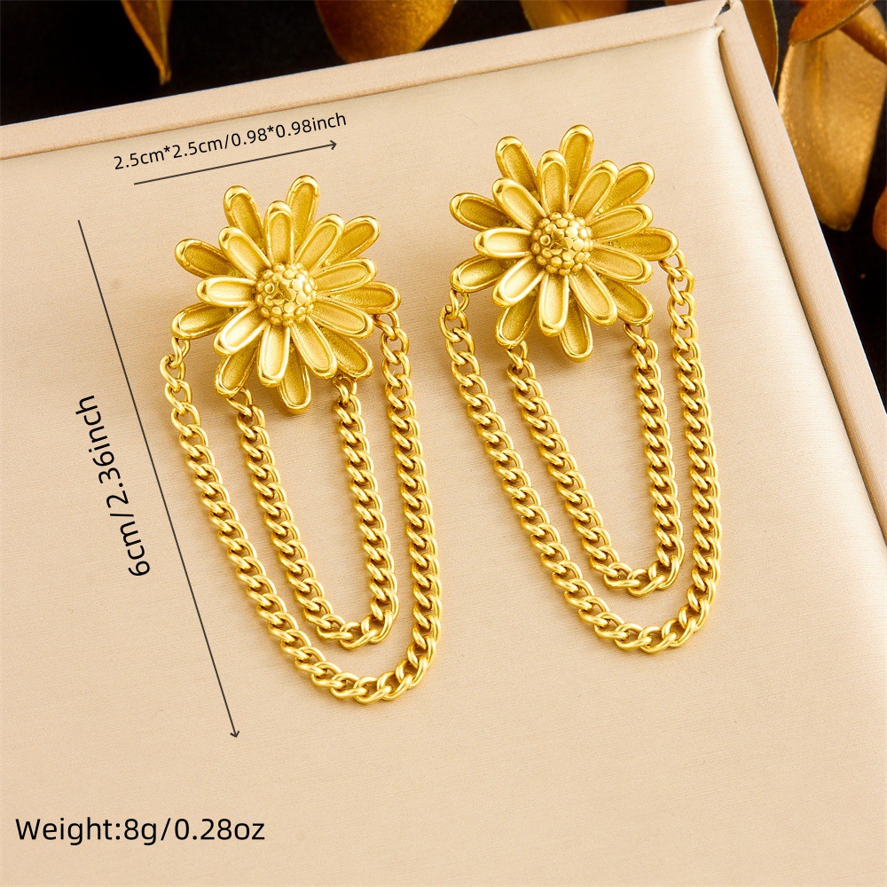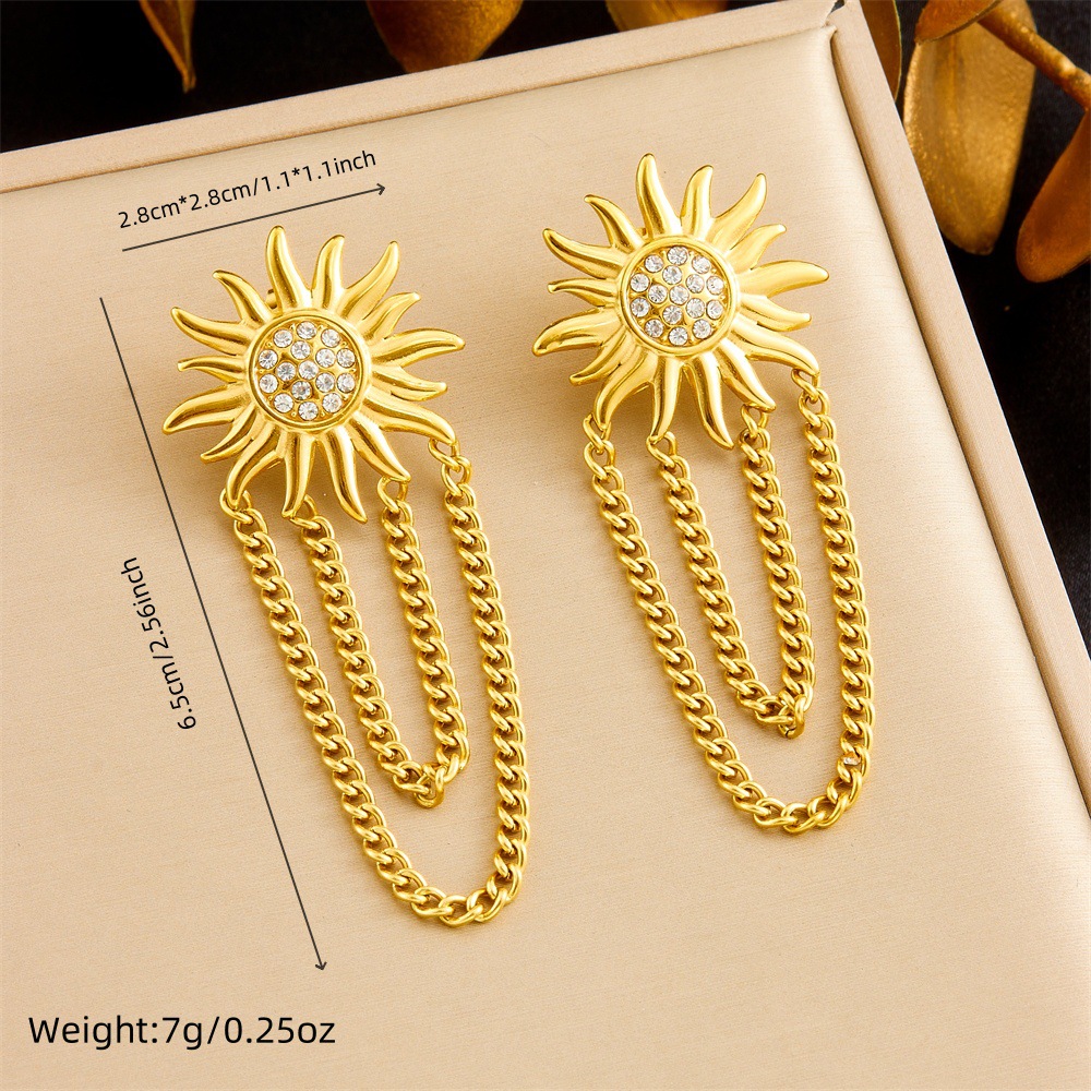 Home > New Arrival > Fashion gold-plated diamond-encrusted sun heart flower bow tassel stainless steel light luxury high-end women's earrings