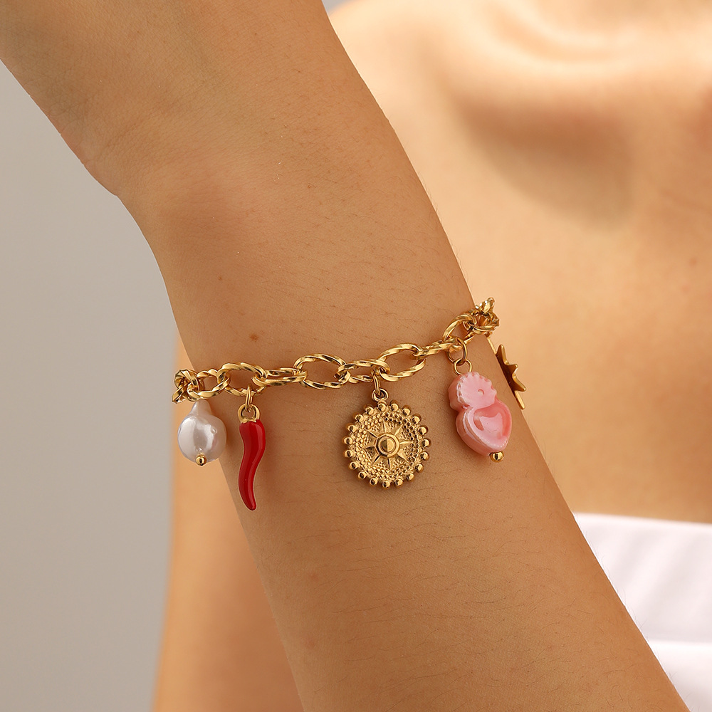 Home > New Arrival > Fashion gold-plated stainless steel plant flower heart disc sun pendant chain jewelry bracelet