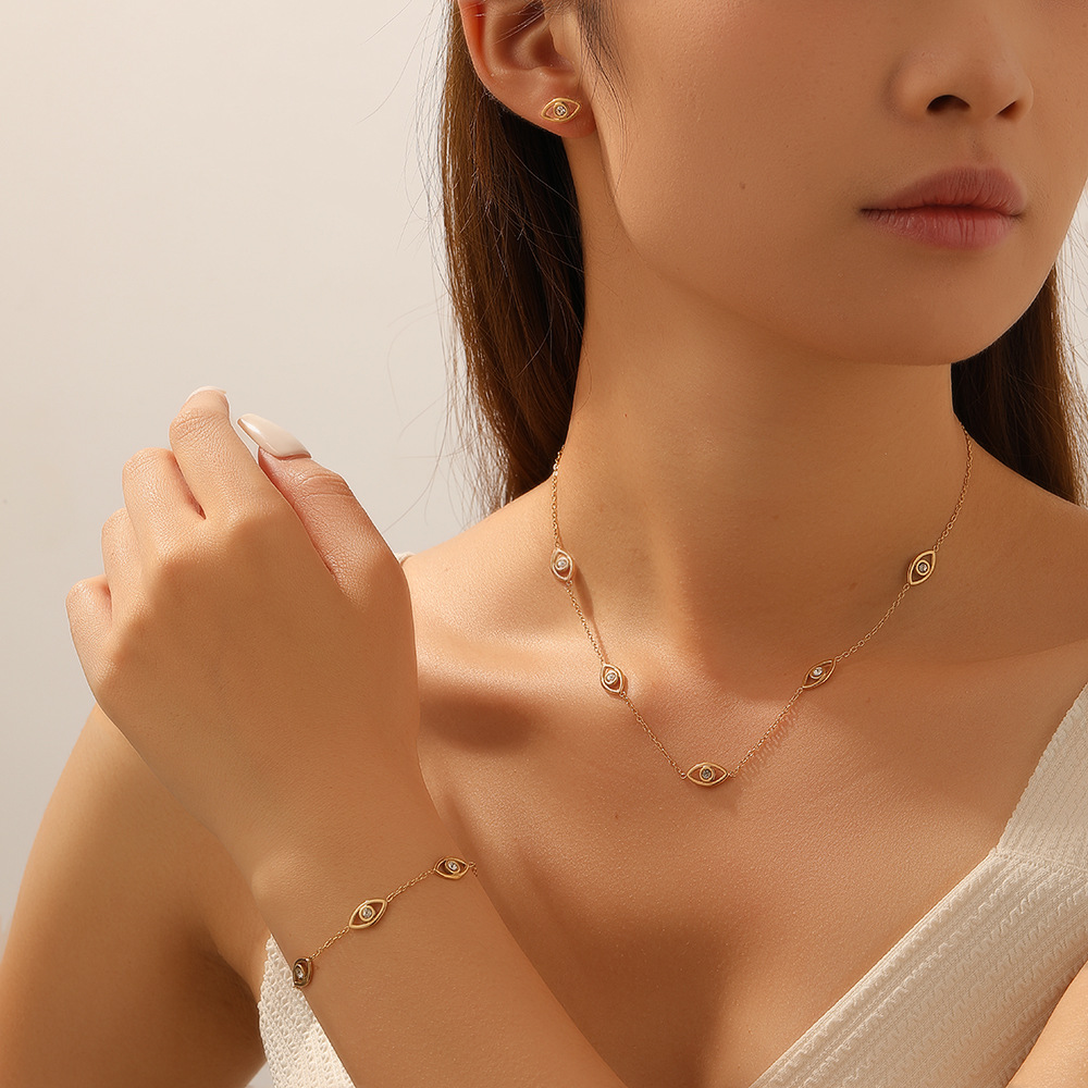 Home > New Arrival > Fashion high-end diamond-encrusted evil eye accessory pendant gold-plated stainless steel chain jewelry set