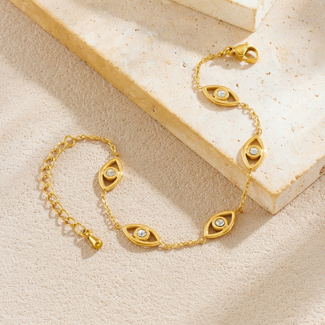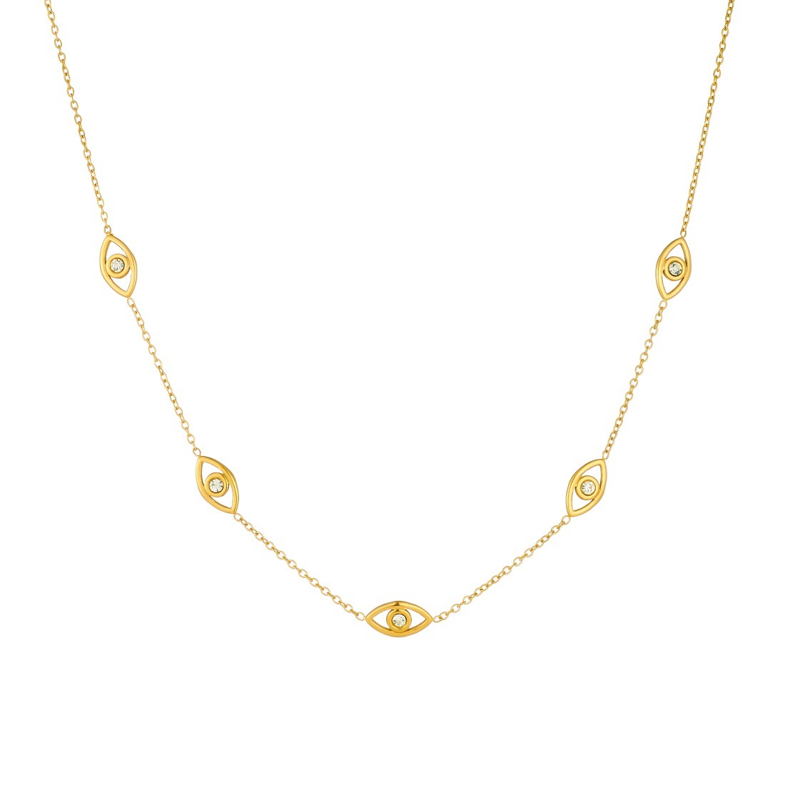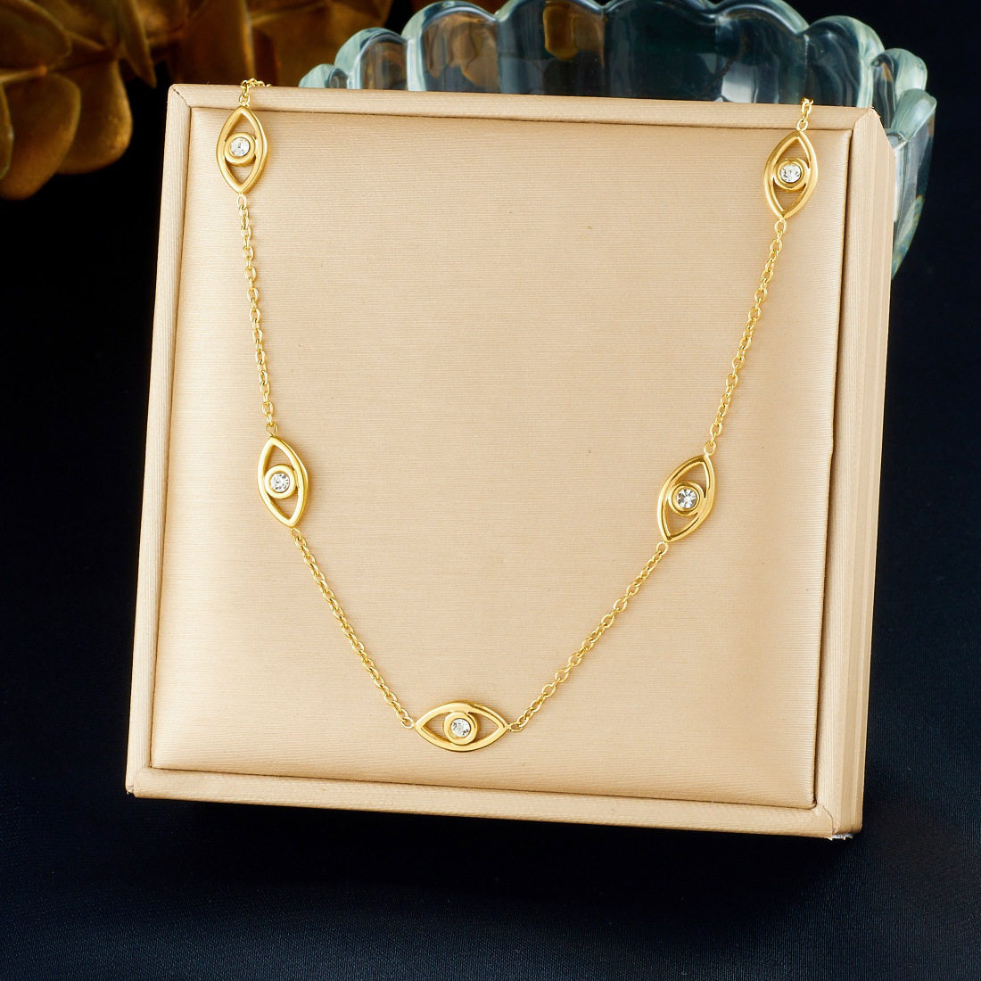 Fashion high-end diamond-encrusted evil eye accessory pendant gold-plated stainless steel chain jewelry set