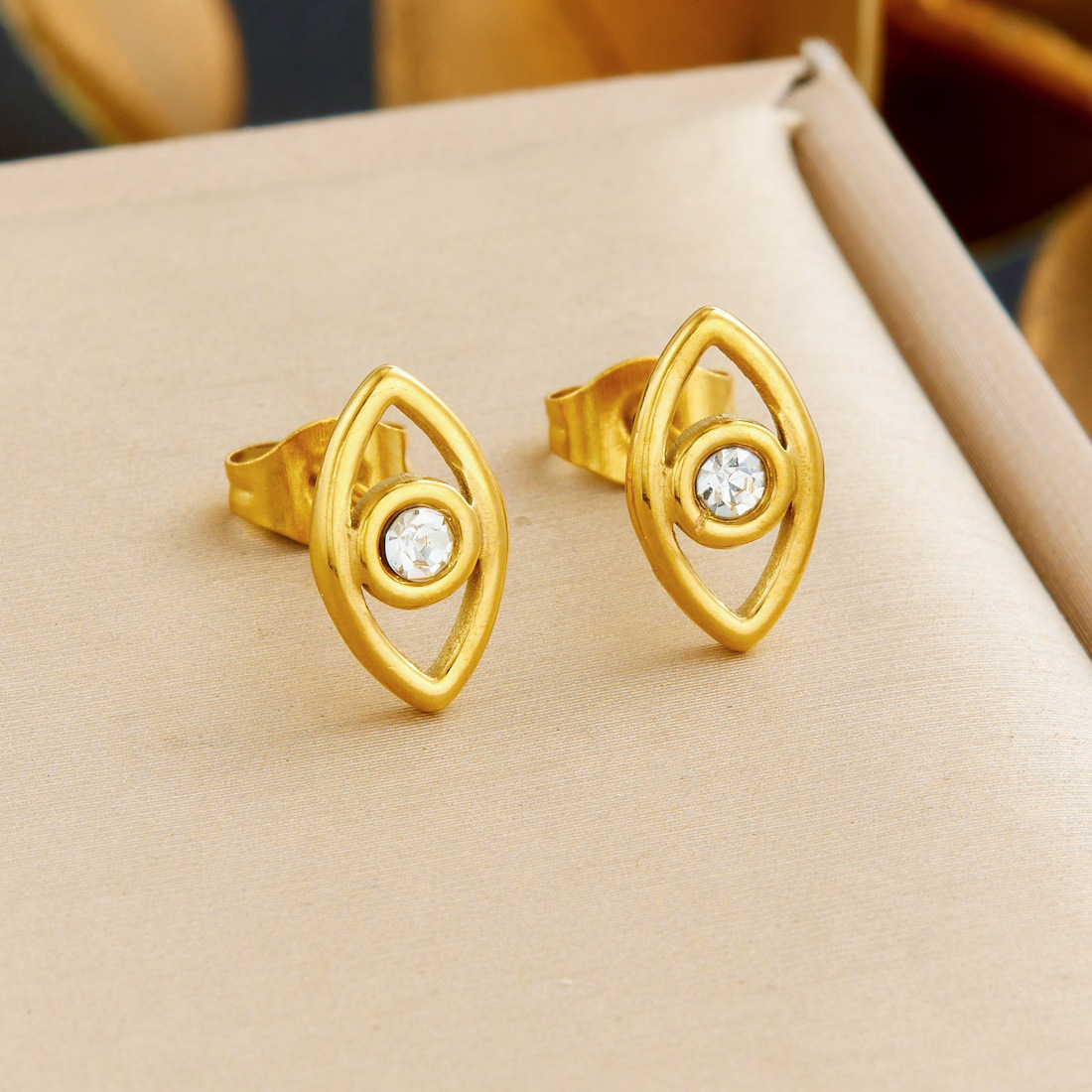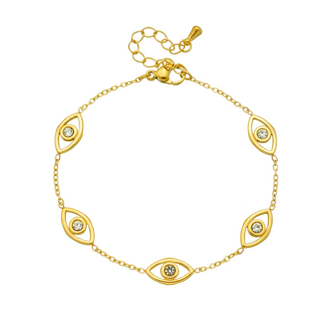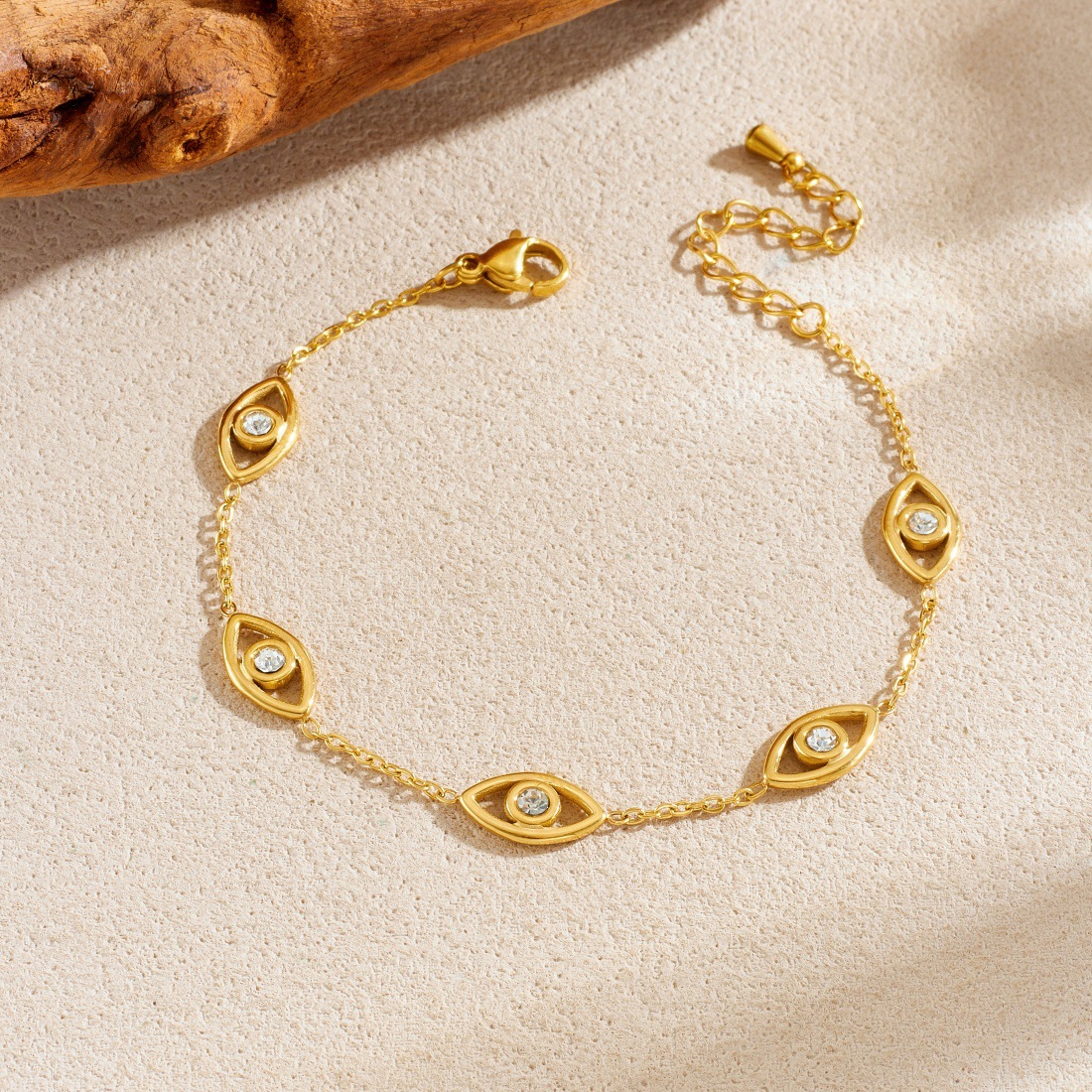 Fashion high-end diamond-encrusted evil eye accessory pendant gold-plated stainless steel chain jewelry set