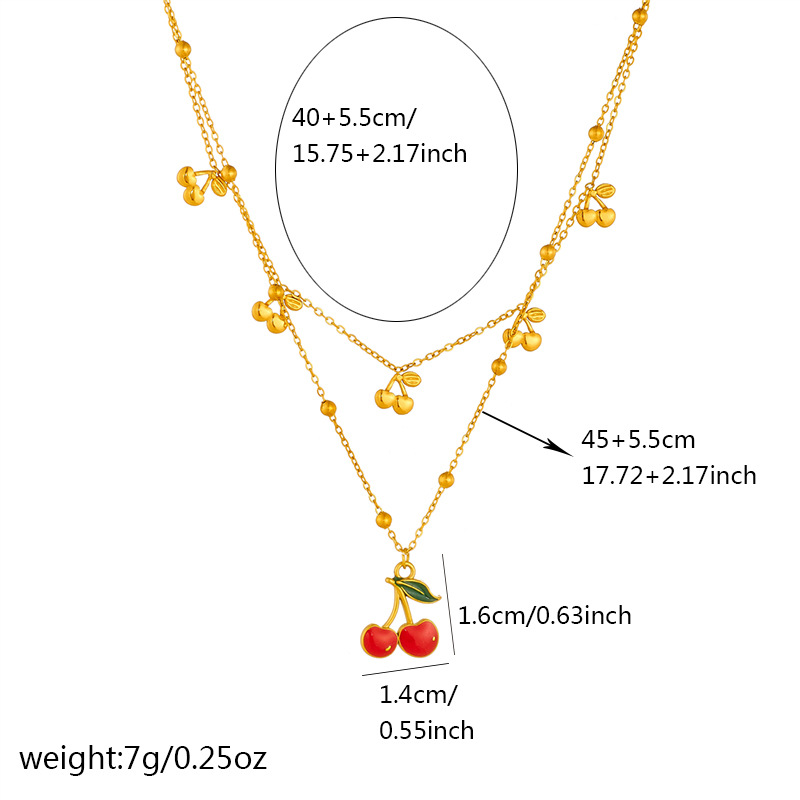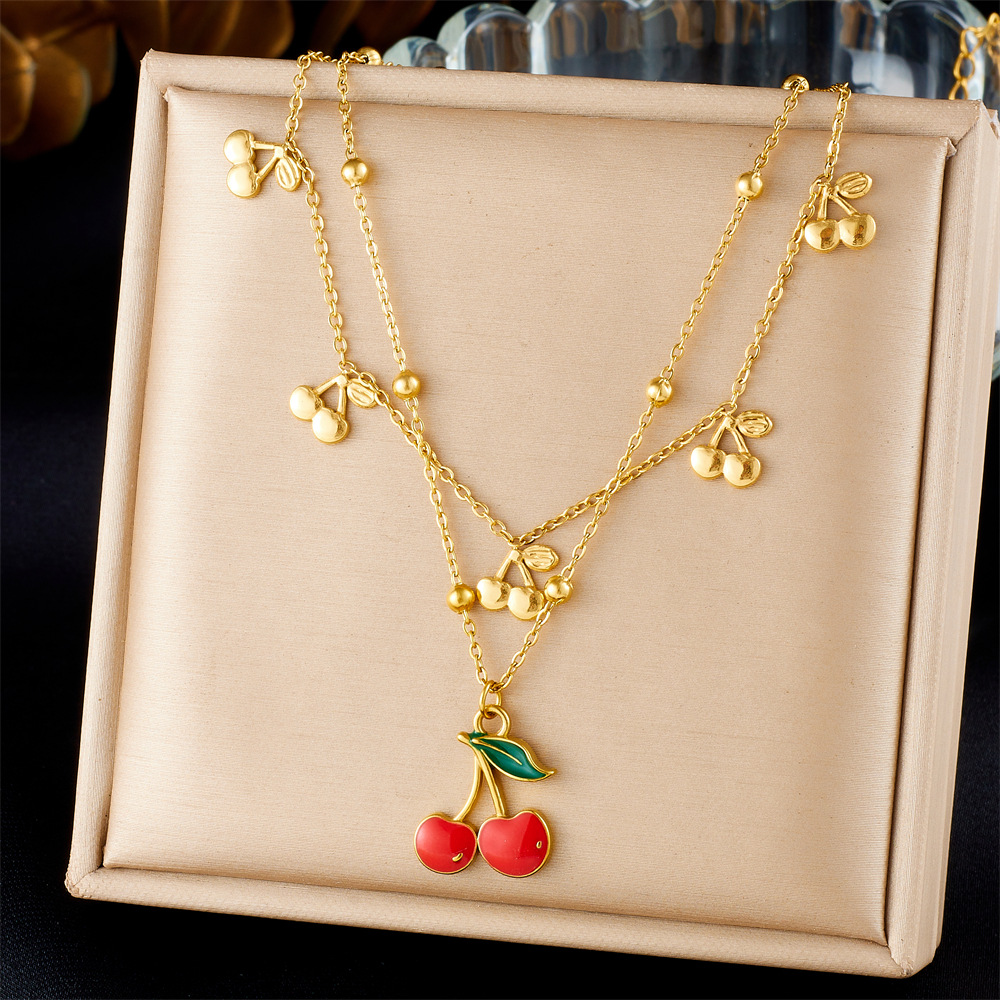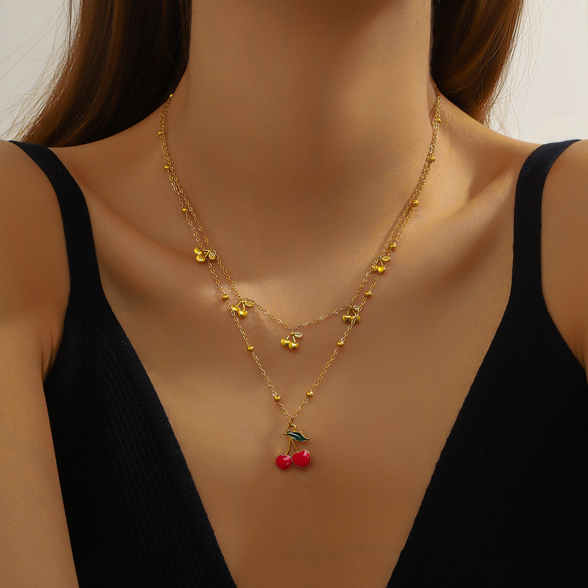 Home > New Arrival > Fashion layered double chain red drip cherry fruit pendant stainless steel clavicle necklace