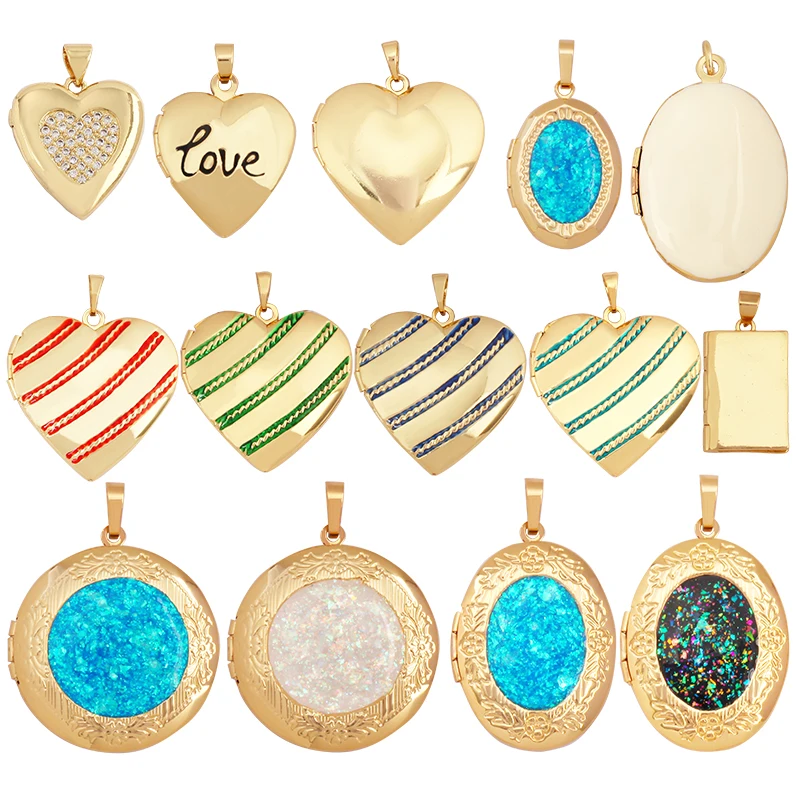 Home > New Arrival > Fashion Love Heart Oval Rectangle Box Locket,Real 18K Gold Plated Open Type Charm Pendant Jewelry Accessories Supplies S03