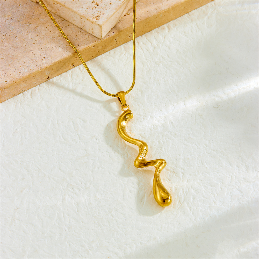 Home > New Arrival > Fashion minimalist cool style gold-plated irregular twisted pendant stainless steel chain necklace