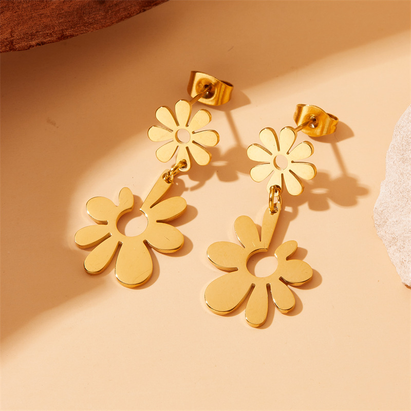 Fashion minimalist creative gold-plated stainless steel small flower open pendant accessories earrings