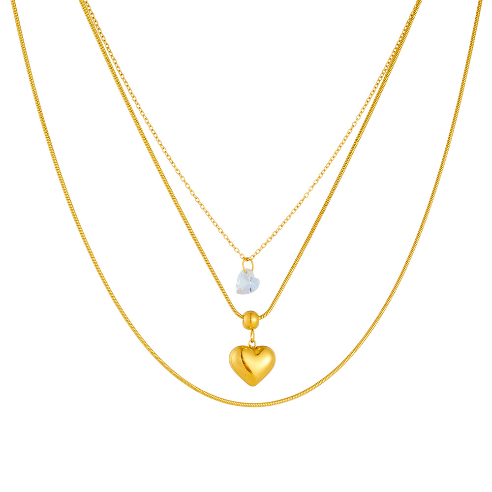 Fashion minimalist layered chain stainless steel heart pendant gold-plated women's snake bone necklace