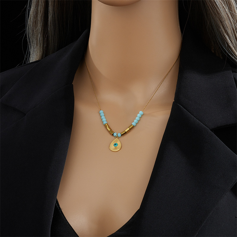 Home > New Arrival > Fashion minimalist niche retro blue eye teardrop pendant faceted beaded titanium steel chain necklace