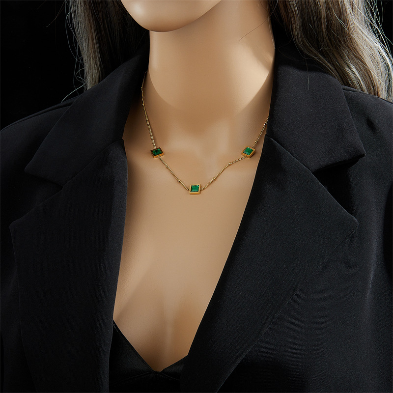 Home > New Arrival > Fashion minimalist retro niche light luxury versatile square green diamond titanium steel chain necklace exquisite