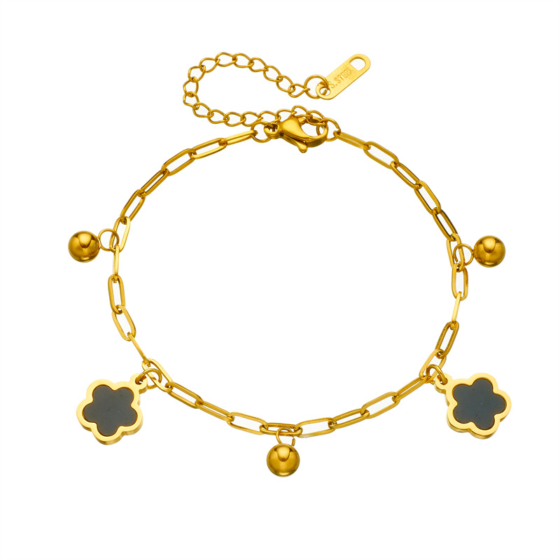 Home > New Arrival > Fashion minimalist white and black shell flower pendant chain stainless steel gold-plated bracelet