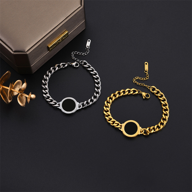 Fashion niche chunky chain black Roman round plaque titanium steel metal jewelry high-end versatile bracelet
