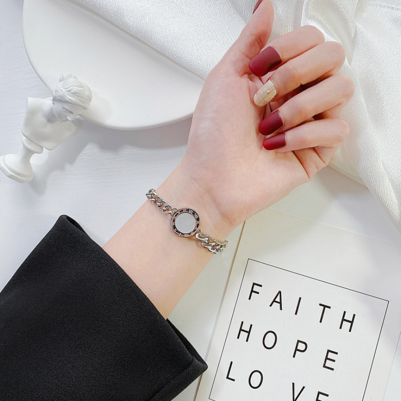 Home > New Arrival > Fashion niche chunky chain black Roman round plaque titanium steel metal jewelry high-end versatile bracelet
