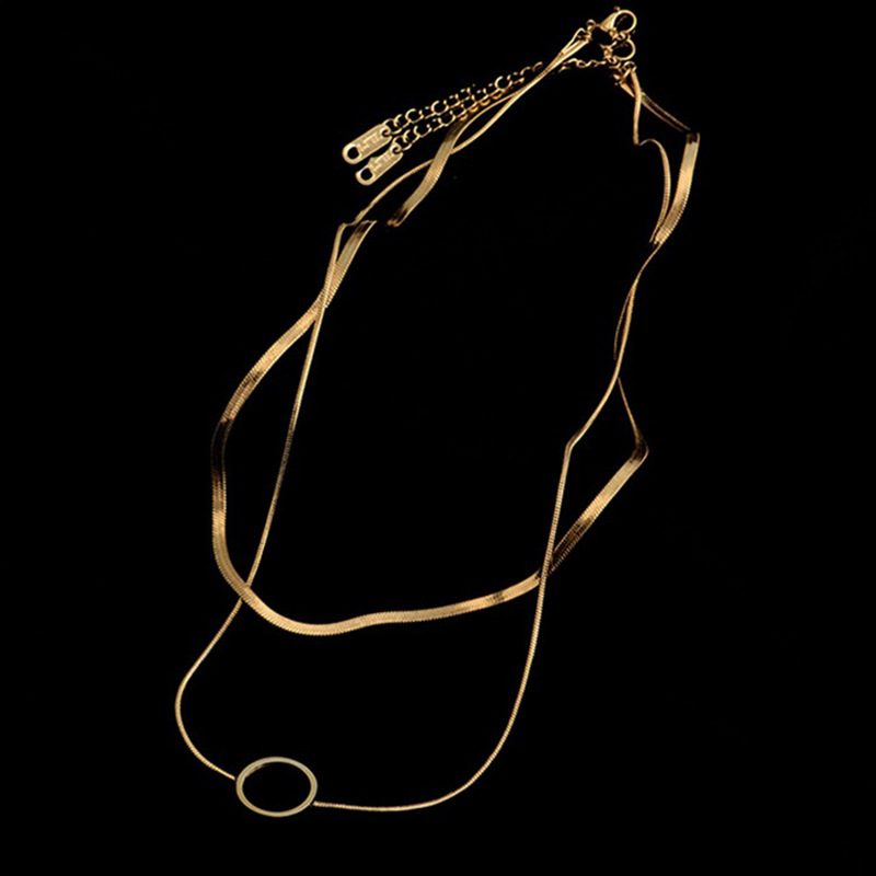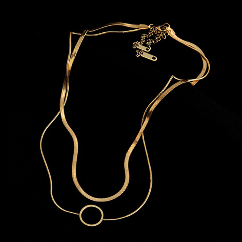 Home > New Arrival > Fashion niche creative high-end double-layer snake chain hollow titanium steel circle pendant necklace