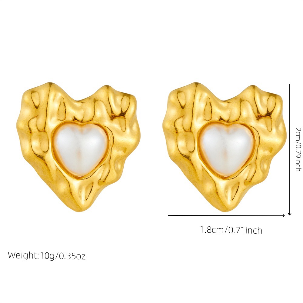 Fashion niche design, irregularly shaped, pearl-inlaid heart-shaped stainless steel French earrings